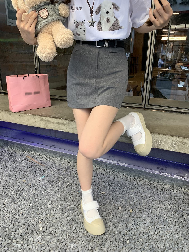 다크 그레이 A 라인 세트 스커트 봄과 가을 클래식 다목적 우아한 세트 스커트 높은 허리 슬리밍 스커트스토어 가기