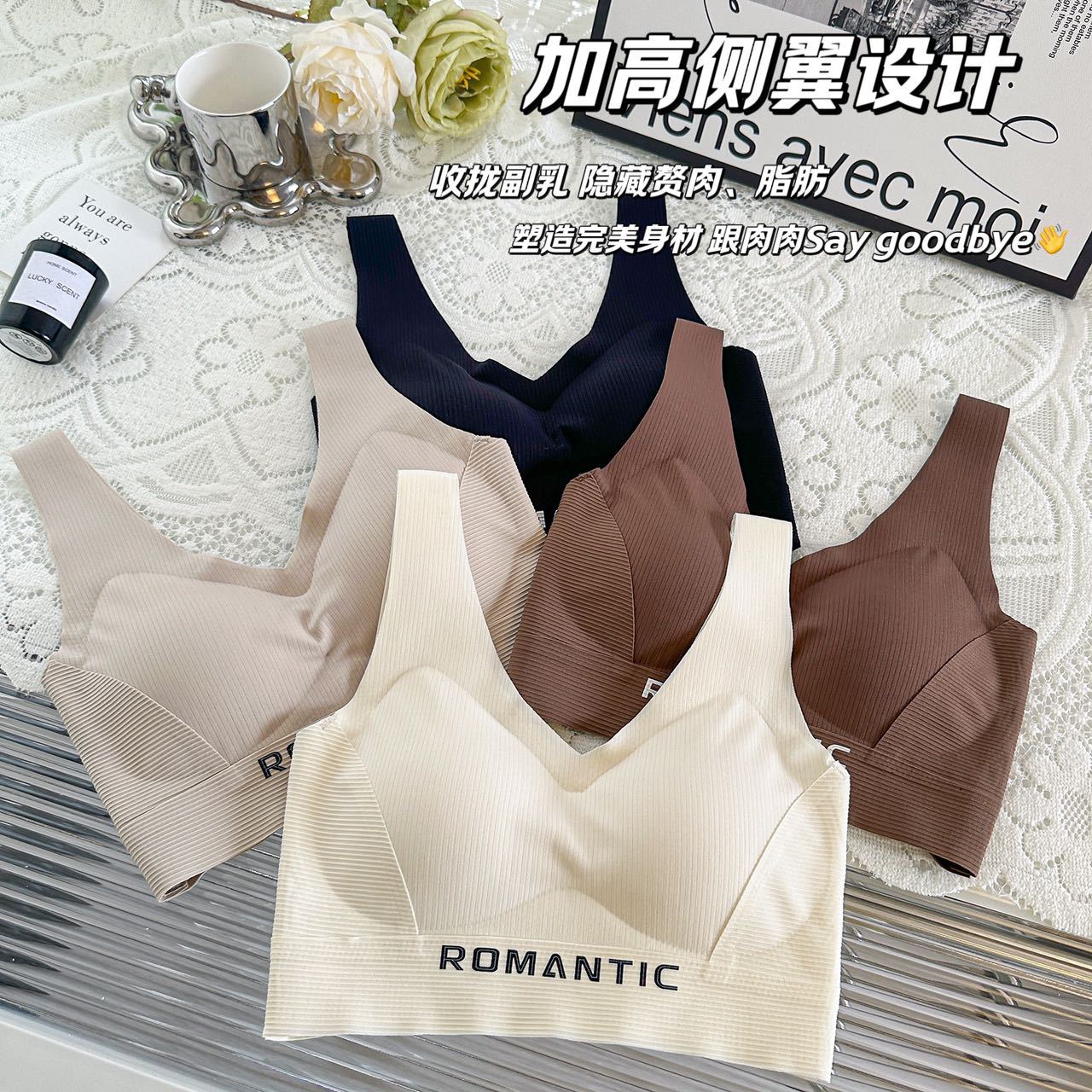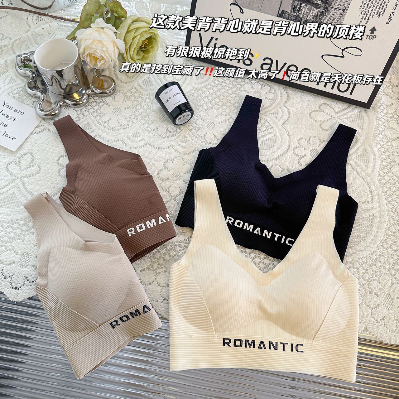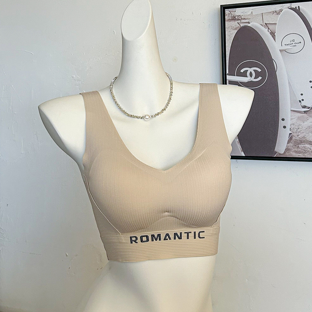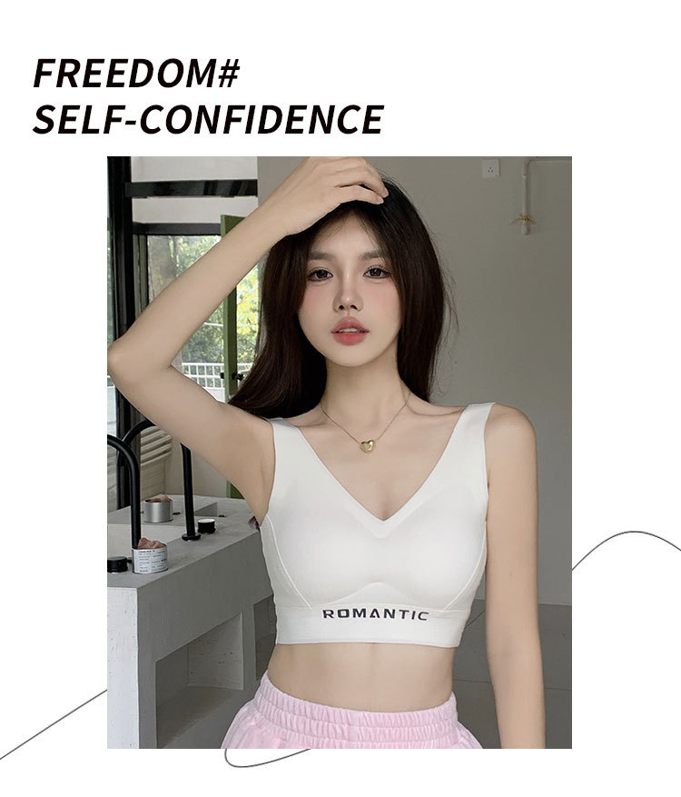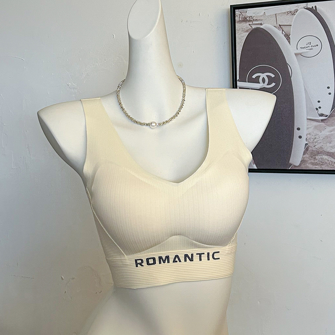 2024 새로운 간단한 캐주얼 레터 스포츠 속옷 탄성이 단단하지 않은 넓은 어깨 끈을 감싼 가슴 튜브 탑 푸시 업 조끼