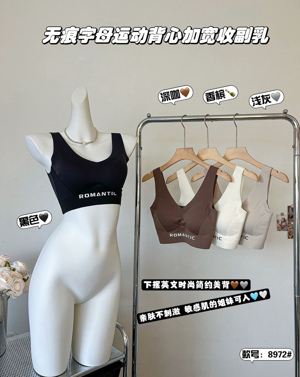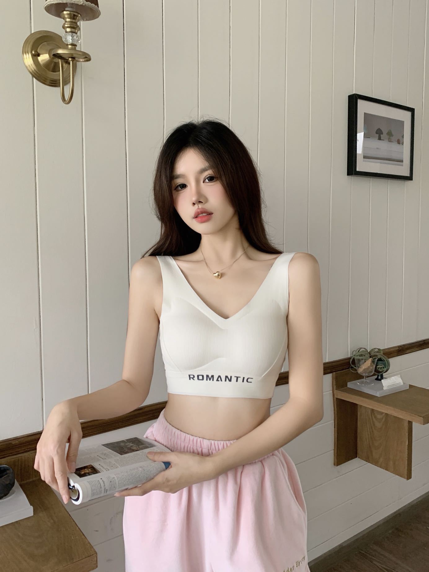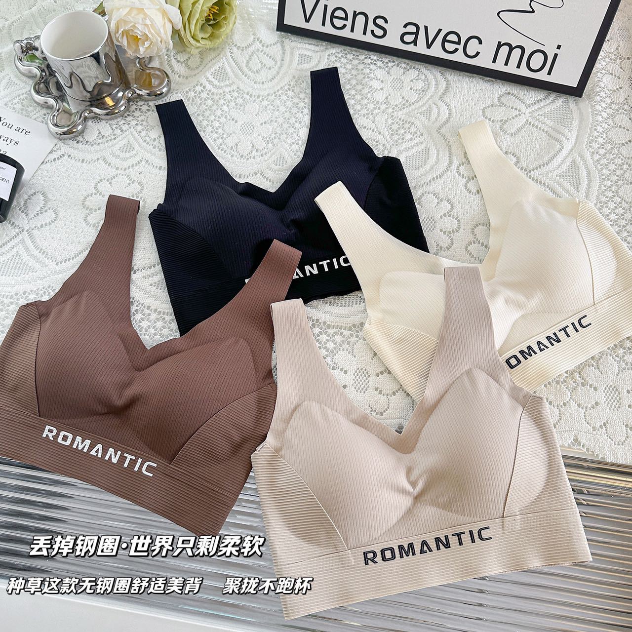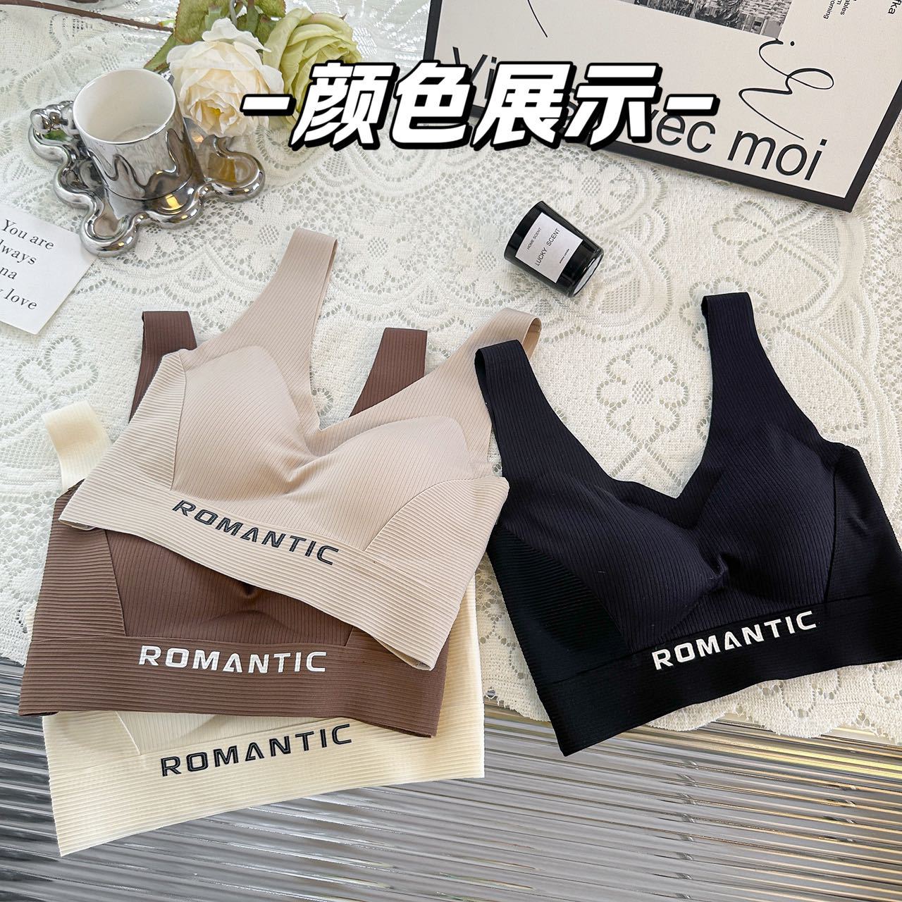 2024 새로운 간단한 캐주얼 레터 스포츠 속옷 탄성이 단단하지 않은 넓은 어깨 끈을 감싼 가슴 튜브 탑 푸시 업 조끼
