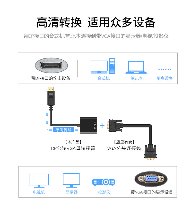 VGA 변환 라인 1080P 노트북 컴퓨터 HD 컨버터 디스플레이 포트 vga 변환 라인스토어 가기