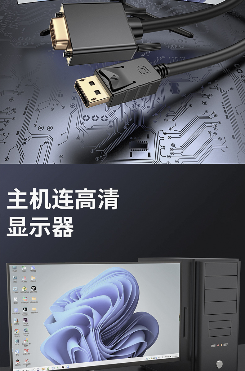 VGA 변환 라인 1080P 노트북 컴퓨터 HD 컨버터 디스플레이 포트 vga 변환 라인