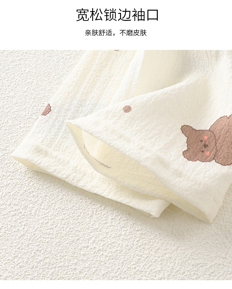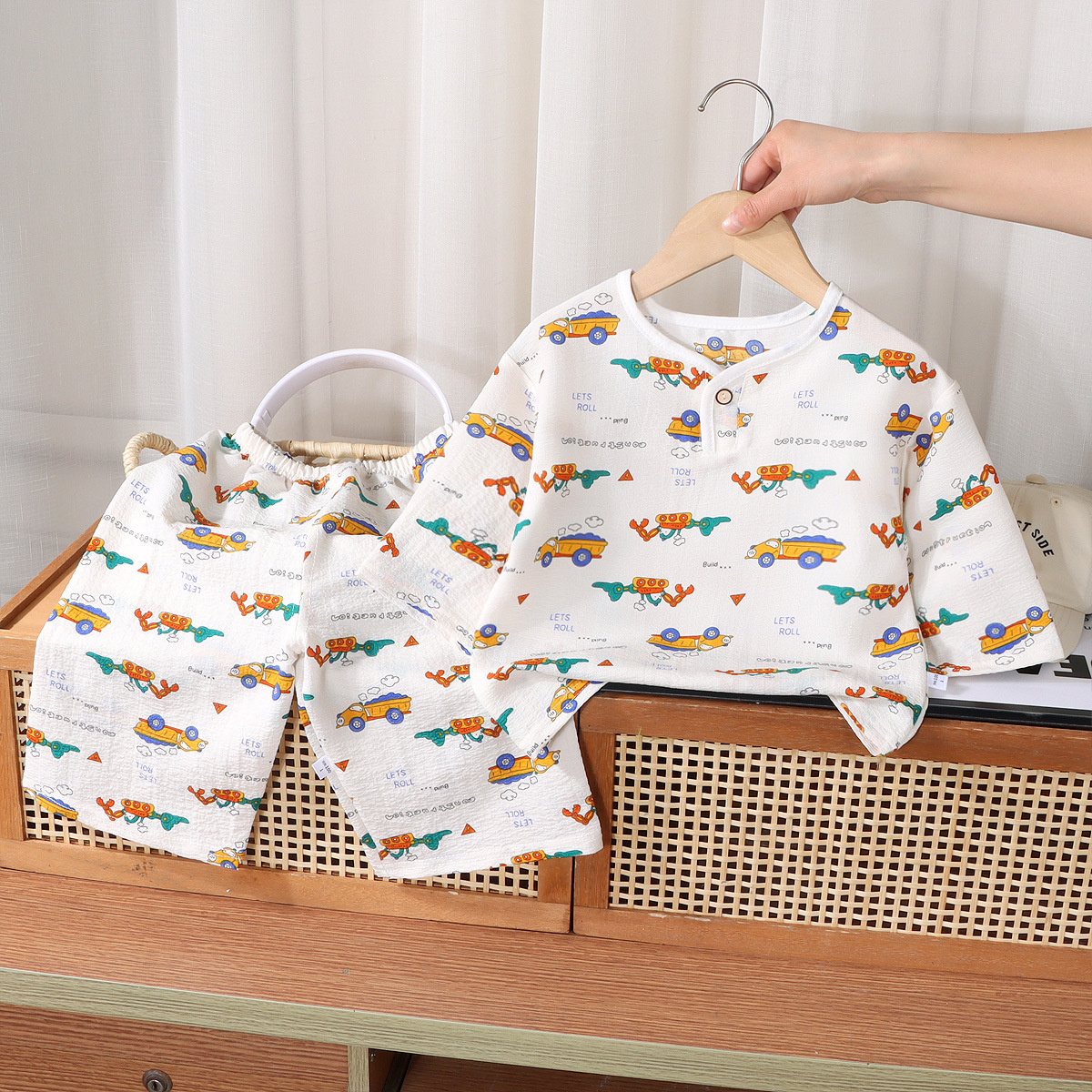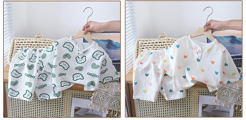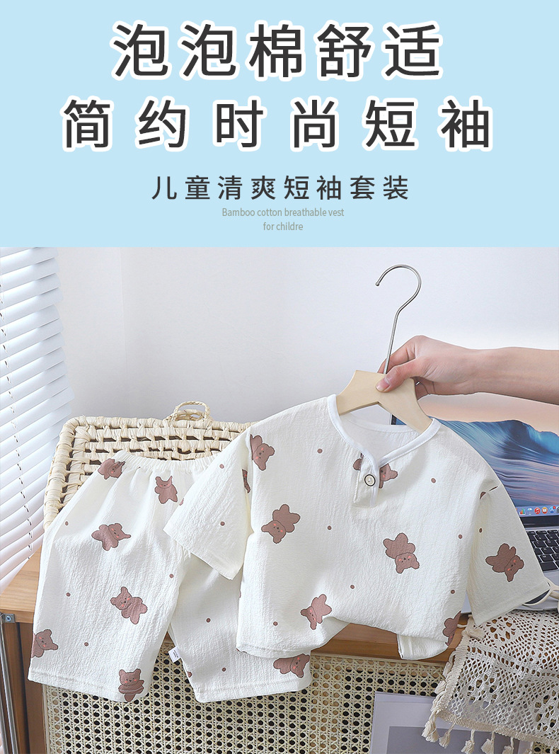 어린이 잠옷 여름 얇은 소년 자른 슬리브 자른 바지 버블 코튼 세트 여자 홈 옷 어린이 여름 옷스토어 가기