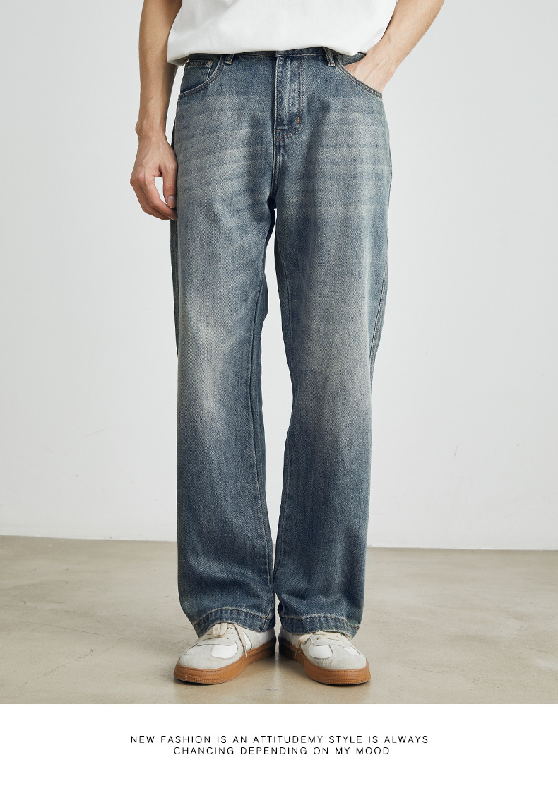 Yizhi 남성용 향수 복고풍 워시 루즈 스트레이트 청바지 남성용 2025 봄 신작 미국 하이 스트리트 바지스토어 가기