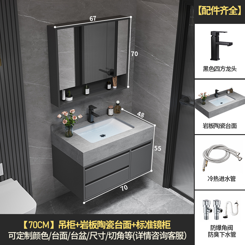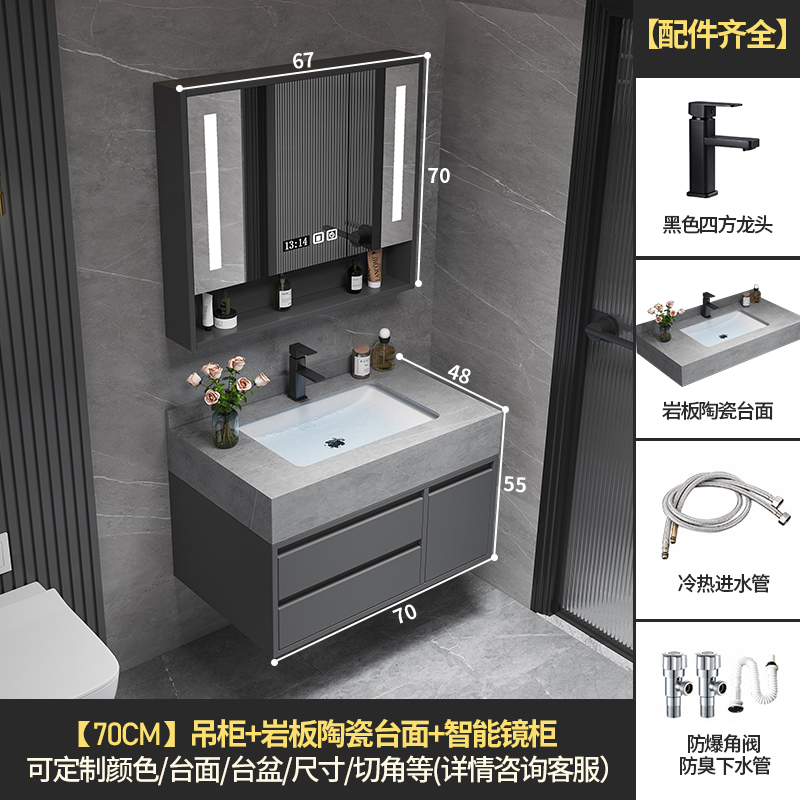• 70 교수형 캐비닛 스마트 미러 캐비닛 + 세라믹 분지 아래 바위 플레이트