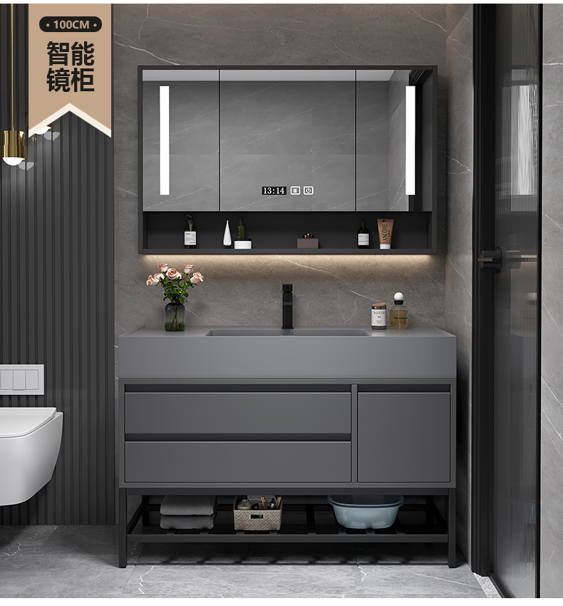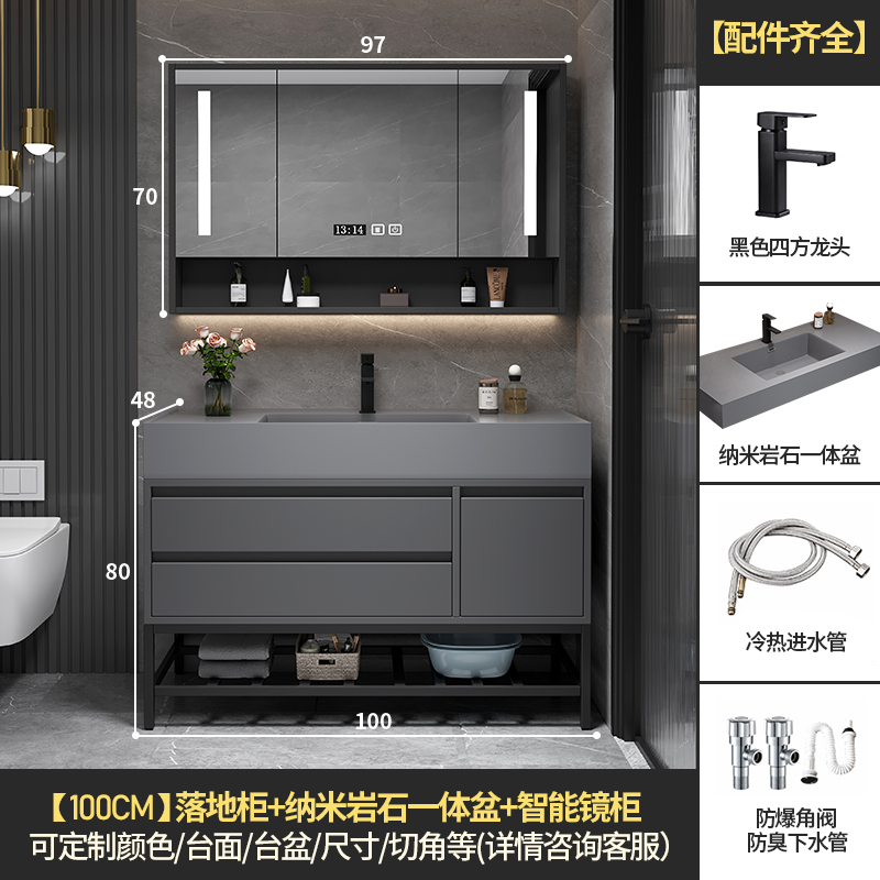 • 100 바닥 캐비닛 스마트 미러 캐비닛 + 나노 록 통합 분지