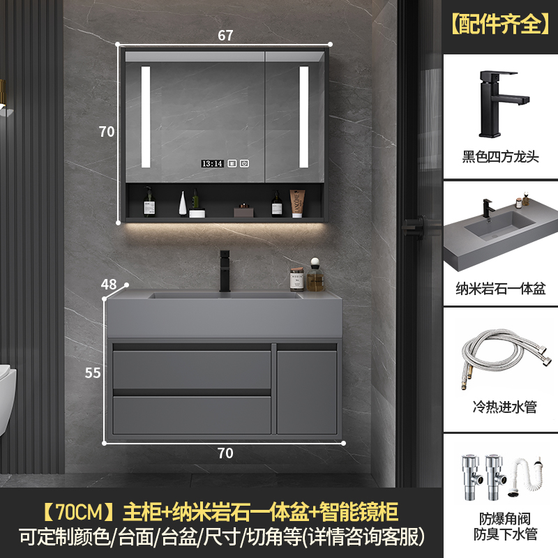 • 70 교수형 캐비닛 스마트 미러 캐비닛 + 나노 록 통합 분지