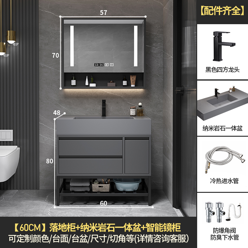 • 60 교수형 캐비닛 스마트 미러 캐비닛 + 나노 록 통합 분지