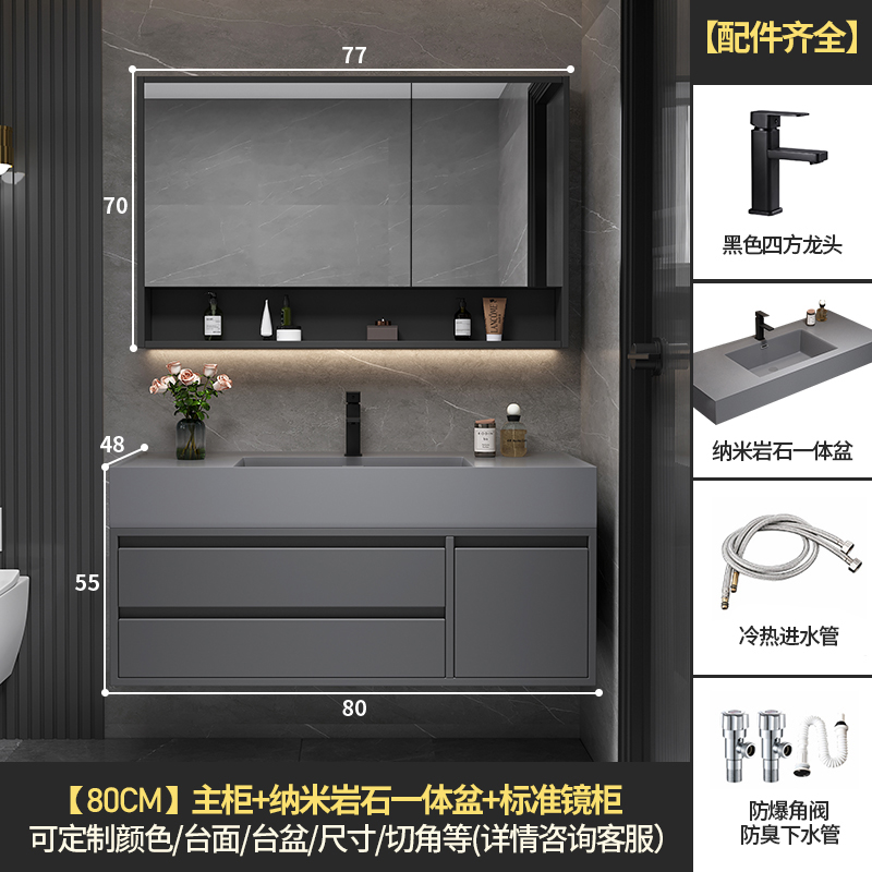 • 80 교수형 캐비닛 스토리지 미러 캐비닛 + 나노 록 통합 분지