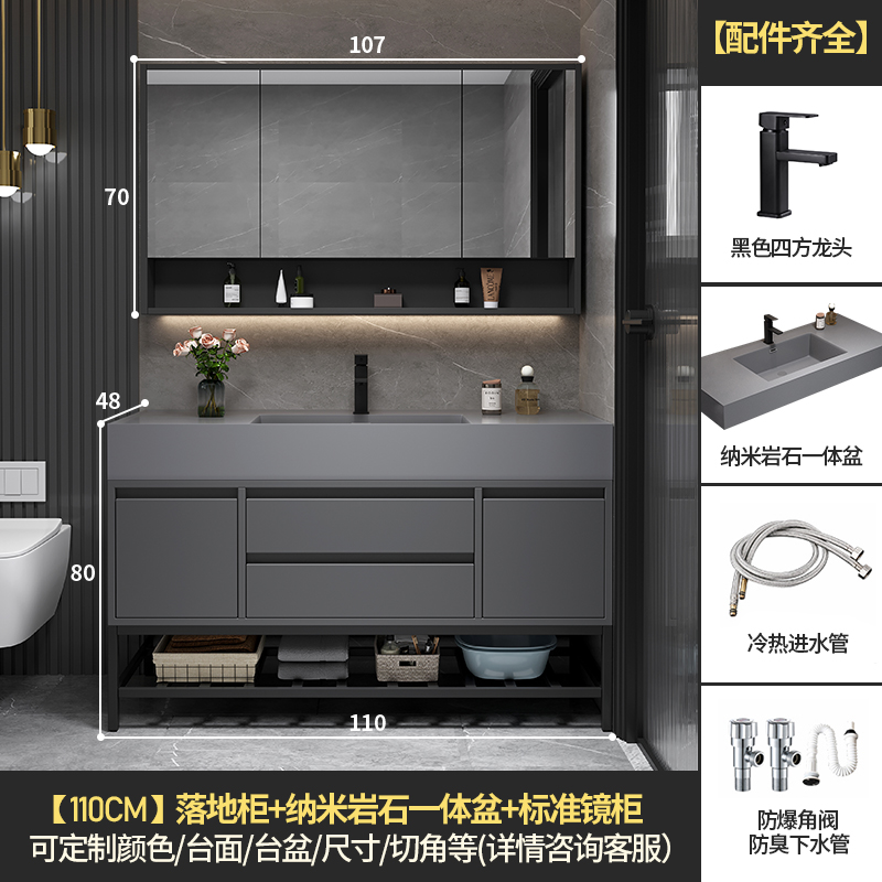 • 110 바닥 캐비닛 스토리지 미러 캐비닛 + 나노 록 통합 분지