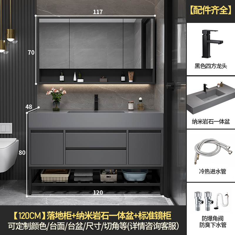 • 120 바닥 캐비닛 스토리지 미러 캐비닛 + 나노 록 통합 분지