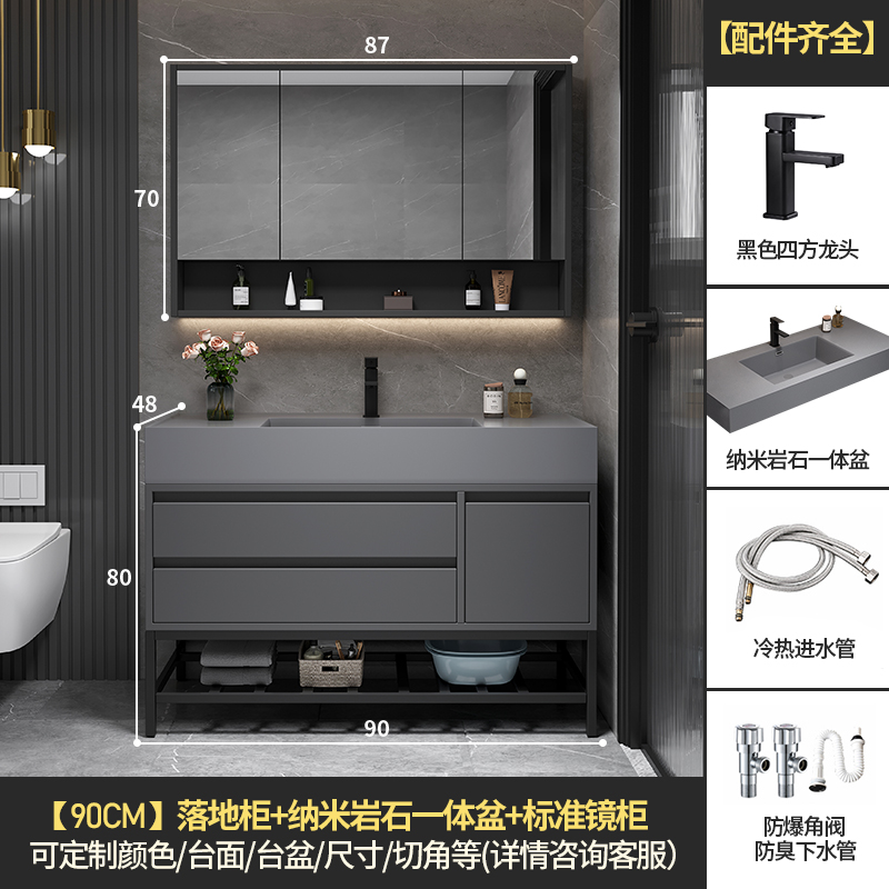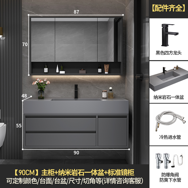 • 90 층 캐비닛 보관 거울 캐비닛 + 나노 록 통합 분지