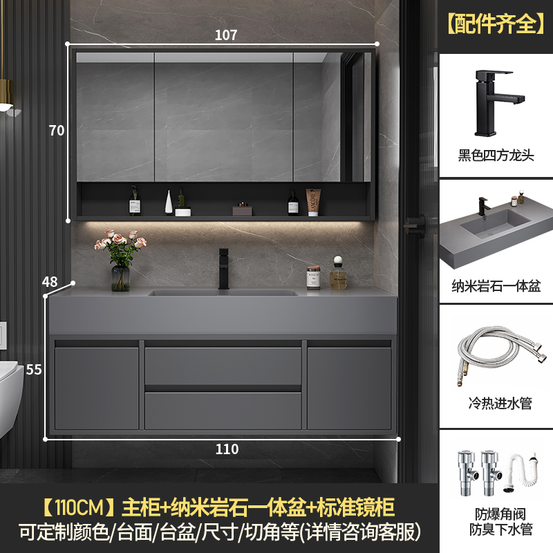• 110 교수형 캐비닛 스토리지 미러 캐비닛 + 나노 록 통합 분지