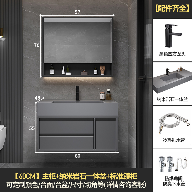 • 60 교수형 캐비닛 보관 거울 캐비닛 + 나노 록 통합 분지