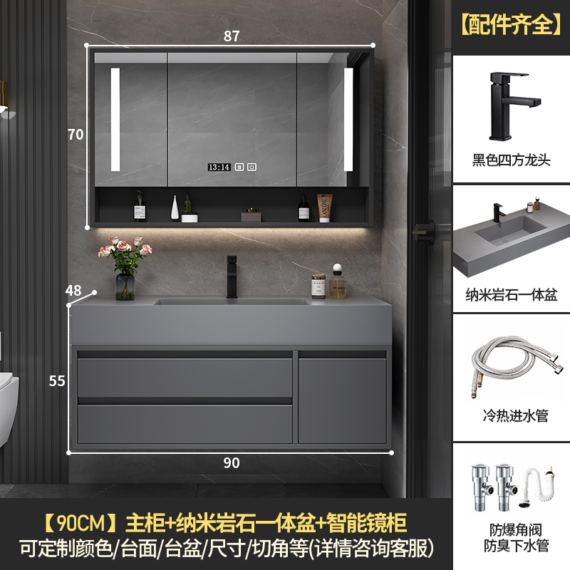 • 90 교수형 캐비닛 스마트 미러 캐비닛 + 나노 록 통합 분지