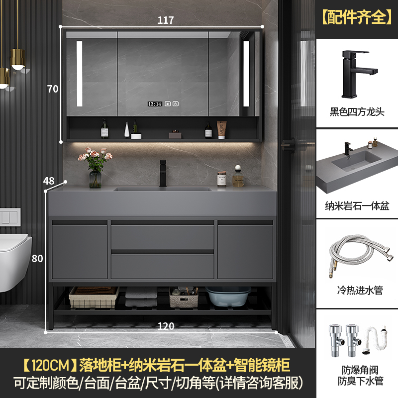• 120 바닥 캐비닛 스마트 미러 캐비닛 + 나노 록 통합 분지