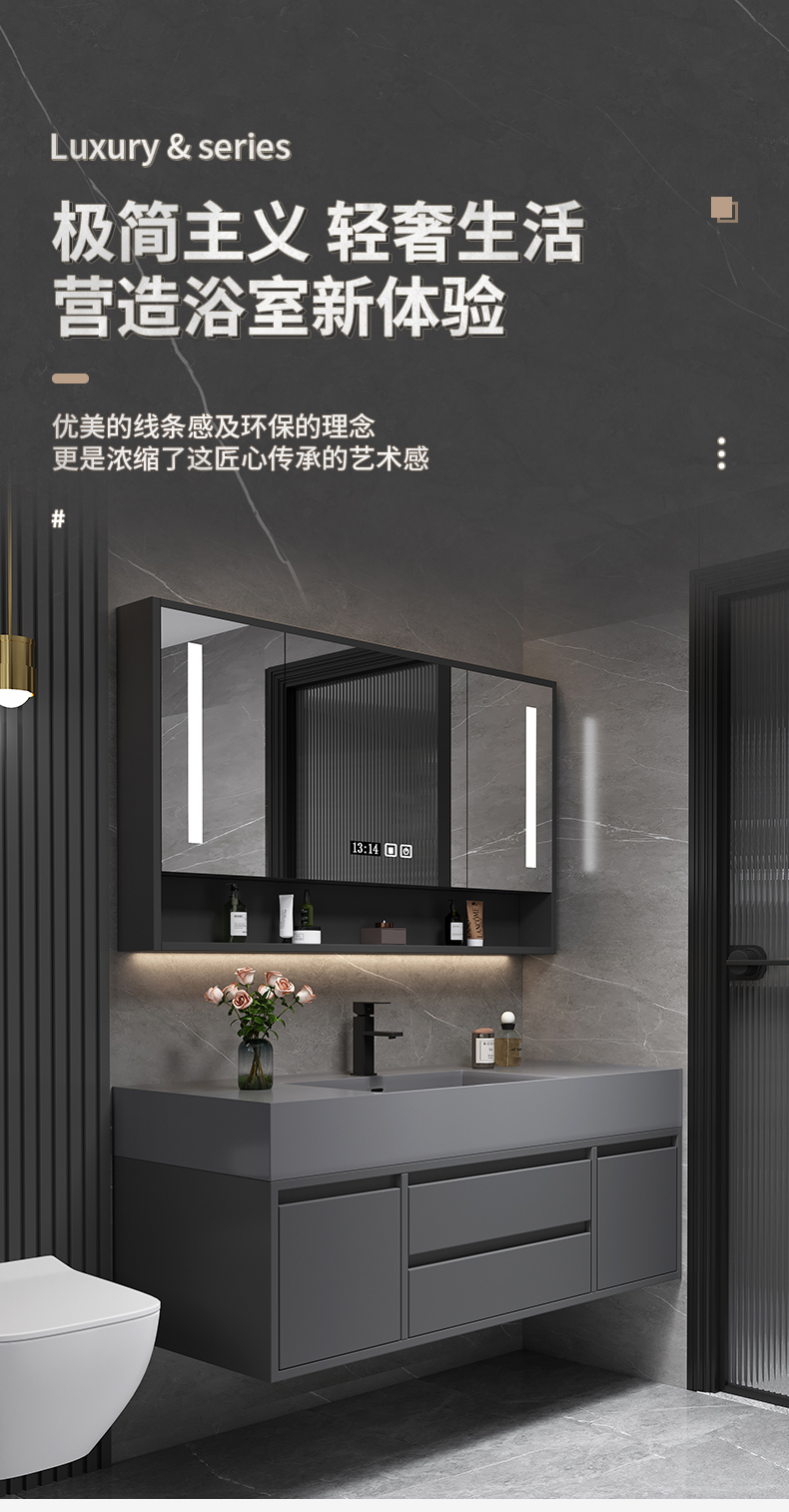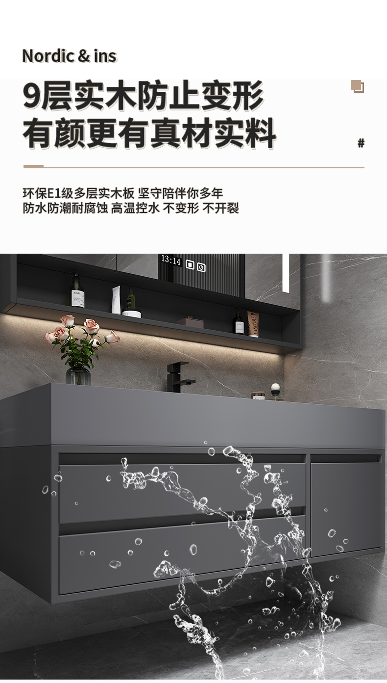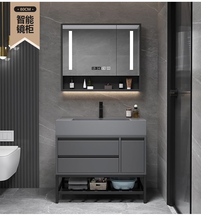 • 80 층 캐비닛 스마트 미러 캐비닛 + 나노 록 통합 분지