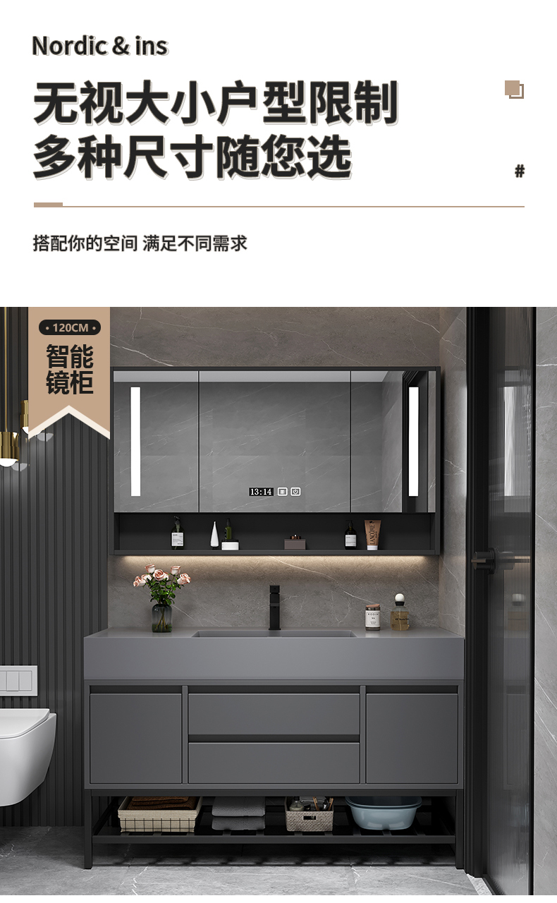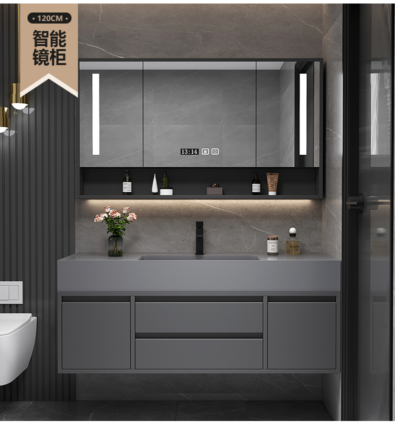 • 120 교수형 캐비닛 스토리지 미러 캐비닛 + 나노 록 통합 분지