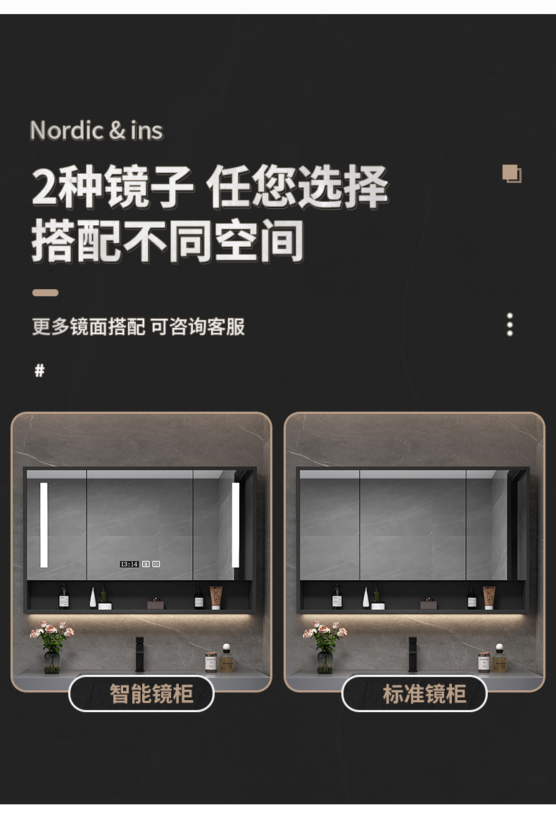 • 80 층 캐비닛 보관 거울 캐비닛 + 나노 록 통합 분지