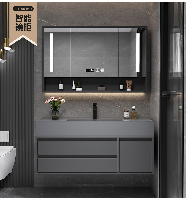 • 100 교수형 캐비닛 스마트 미러 캐비닛 + 나노 록 통합 분지