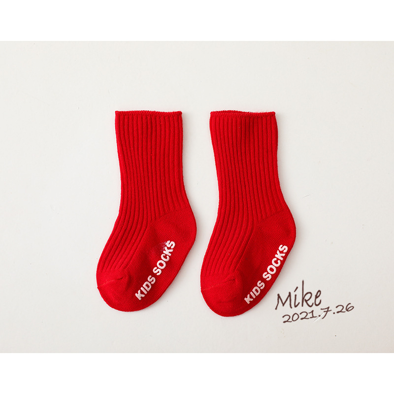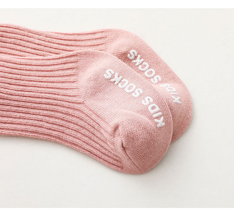 IN 더블 바늘 어린이 양말 세로 줄무늬 아기 양말 피트 스트립 미끄럼 방지 접착제 어린이 중간 종아리 양말 느슨한 입 아기 바닥 양말