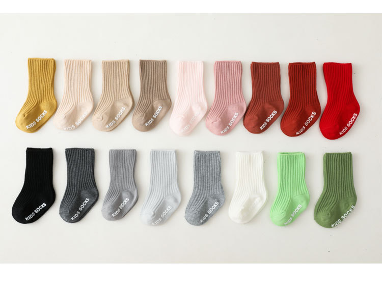 IN 더블 바늘 어린이 양말 세로 줄무늬 아기 양말 피트 스트립 미끄럼 방지 접착제 어린이 중간 종아리 양말 느슨한 입 아기 바닥 양말스토어 가기