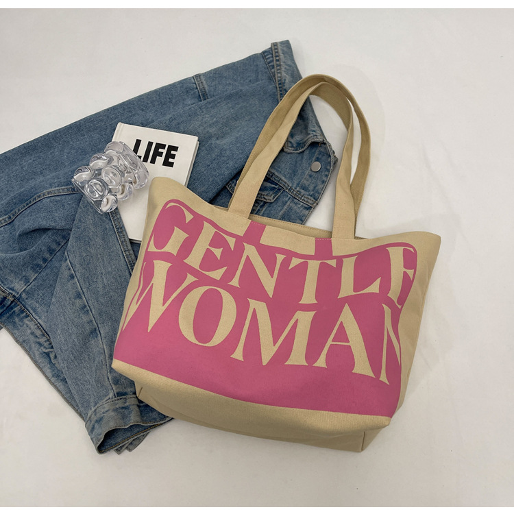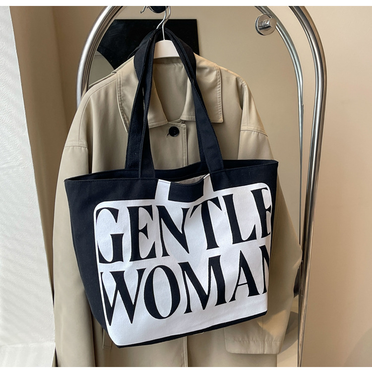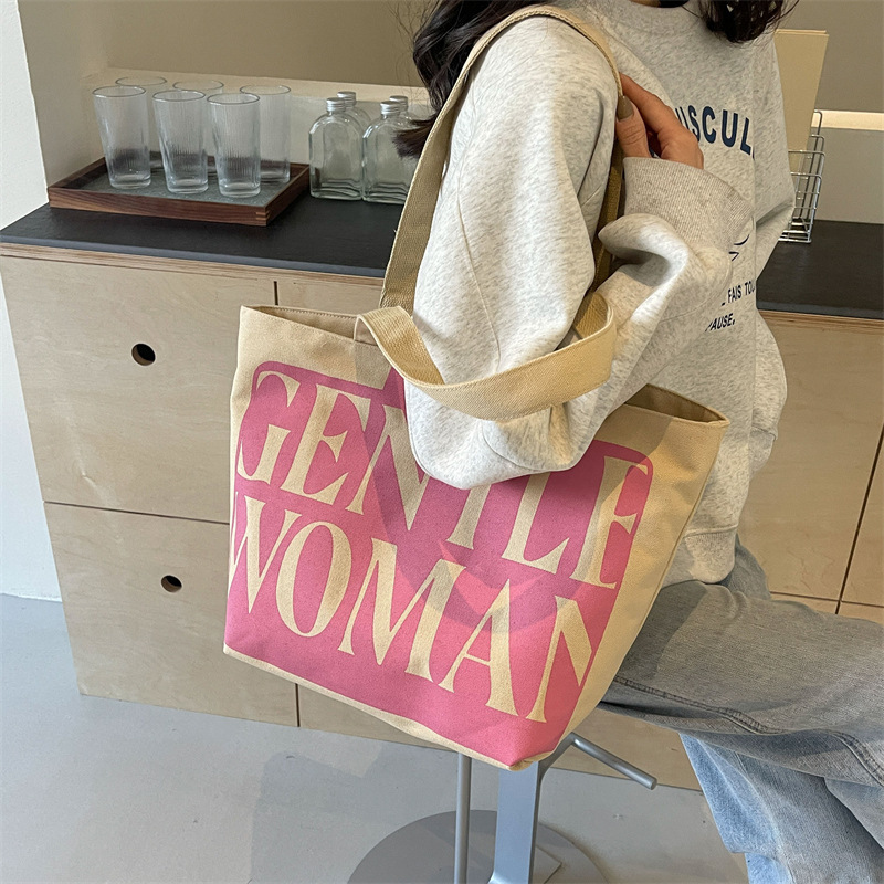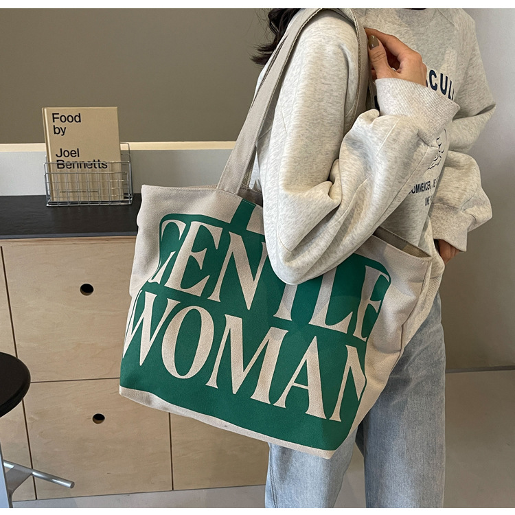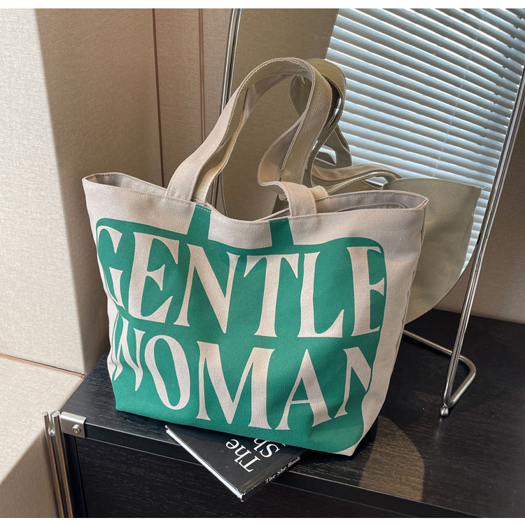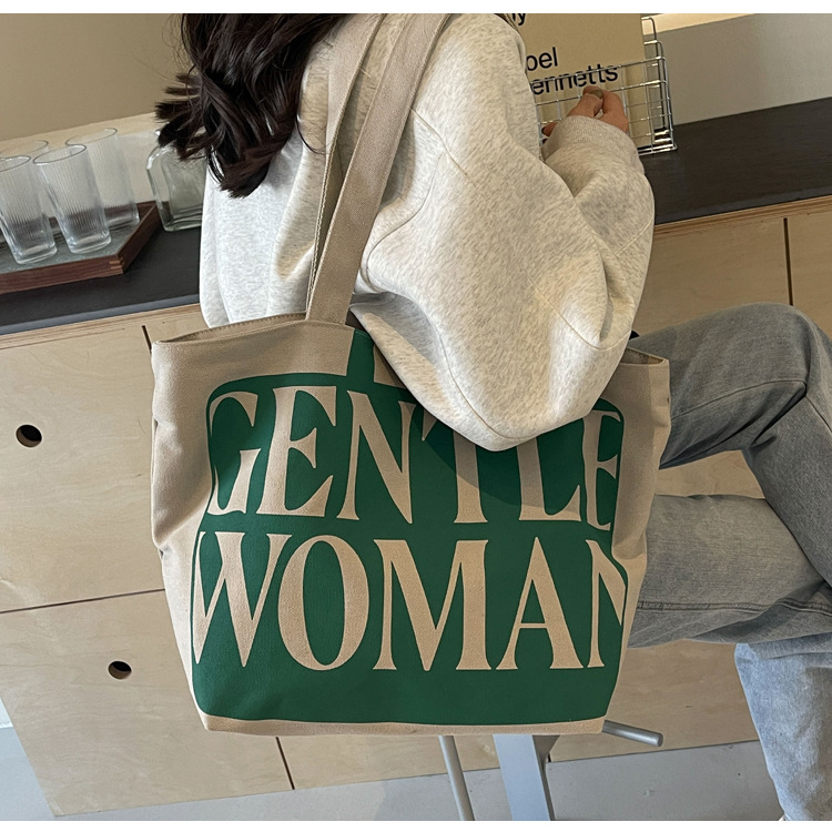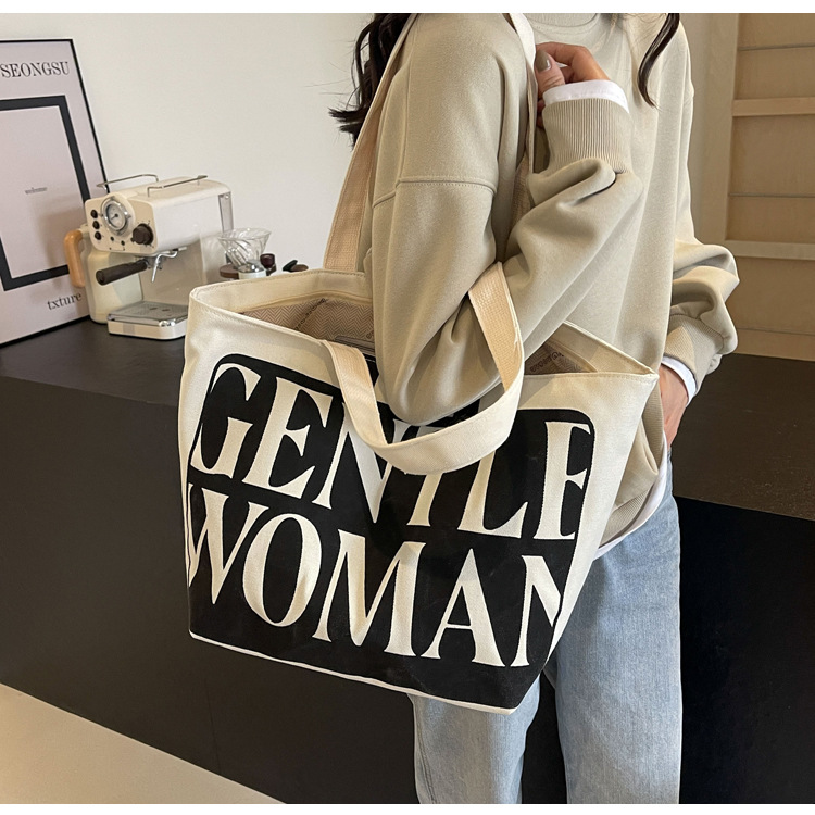 2024 새로운 편지 토트 백 여성 대용량 홍콩 스타일 틈새 숄더백 원래 예술적 대학생 클래스 가방스토어 가기