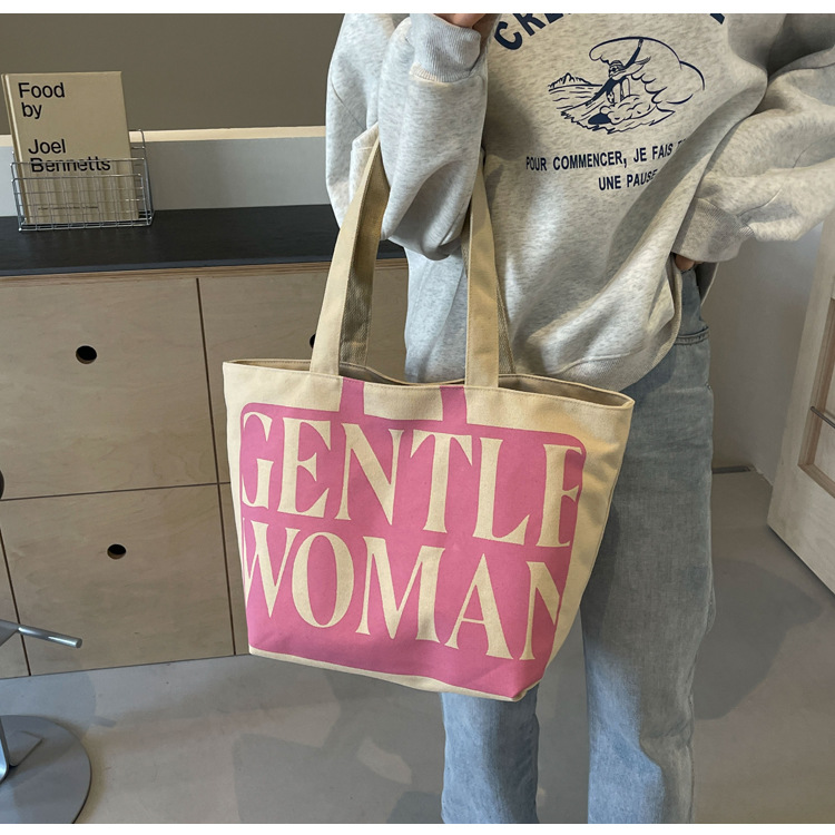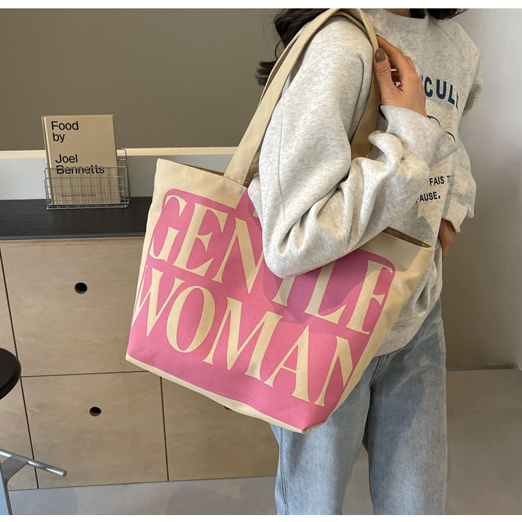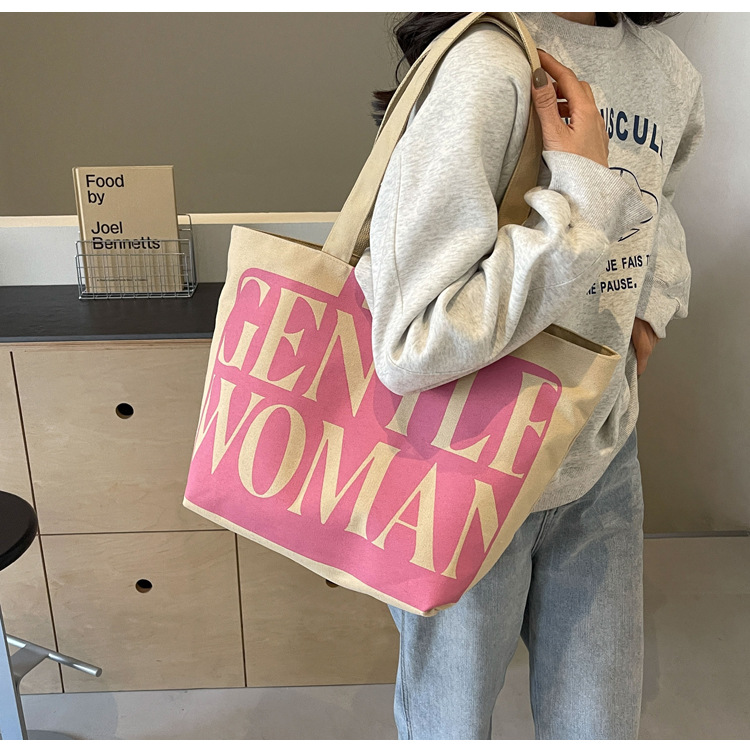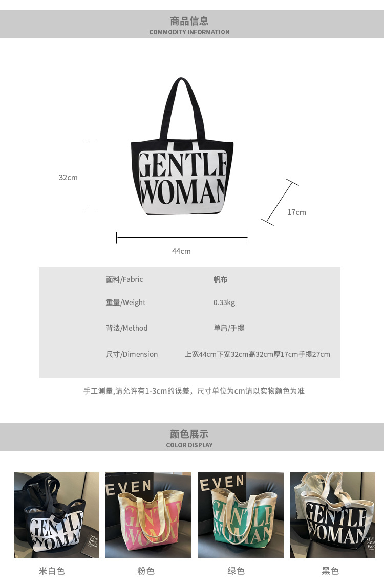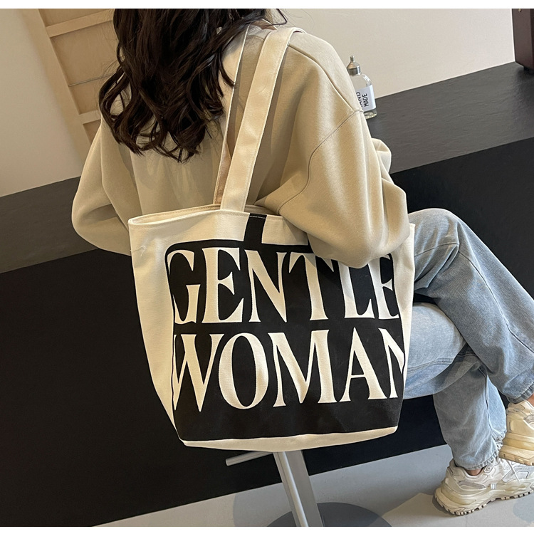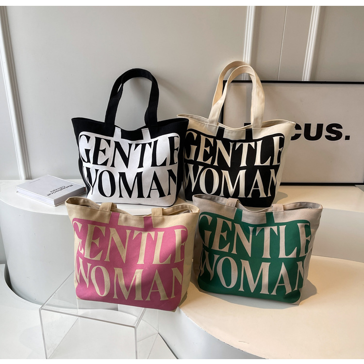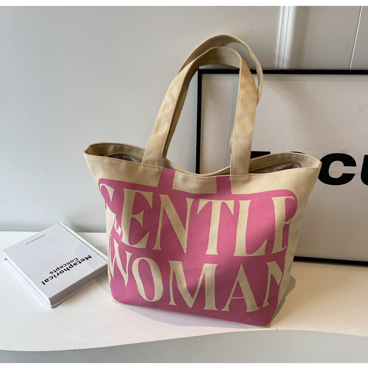 2024 새로운 편지 토트 백 여성 대용량 홍콩 스타일 틈새 숄더백 원래 예술적 대학생 클래스 가방스토어 가기