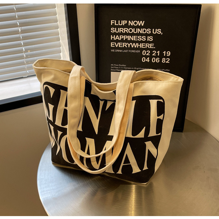 2024 새로운 편지 토트 백 여성 대용량 홍콩 스타일 틈새 숄더백 원래 예술적 대학생 클래스 가방
