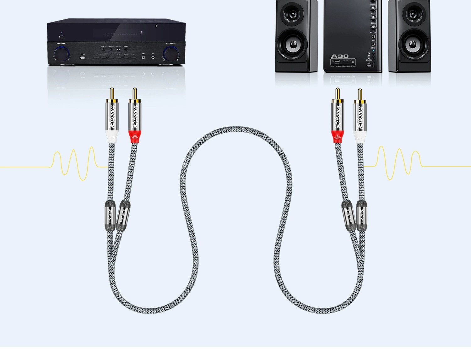 Lexen Lotus 헤드 오디오 케이블 이중 자기 링 노이즈 감소 2 ~ 2 2rca 출력 변환 오디오 증폭기 서브 우퍼
