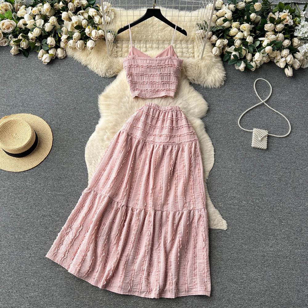 나이를 줄이는 세트 여자 여름 2023 새로운 도착 톱 쇼트 올 매치 대형 스윙 스커트 달콤한 투피스 유행 세트