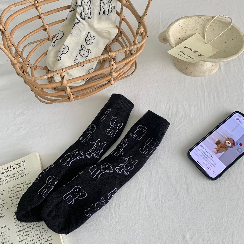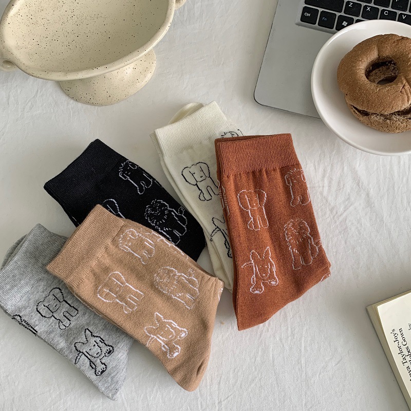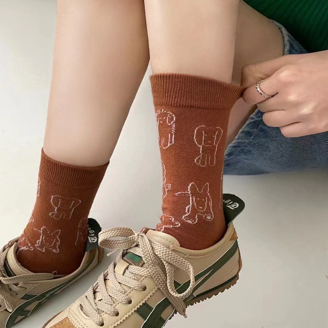 봄과 여름 구름 개 귀여운 중간 송아지 양말 여성 양말 올 매치 도파민 양말 대학 스타일 만화 주지 양말 도매