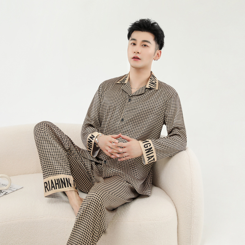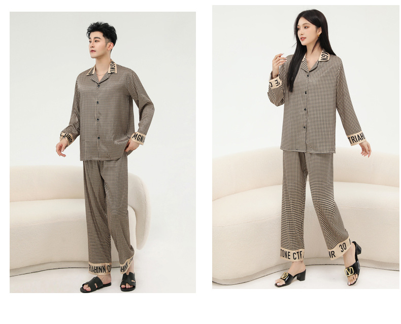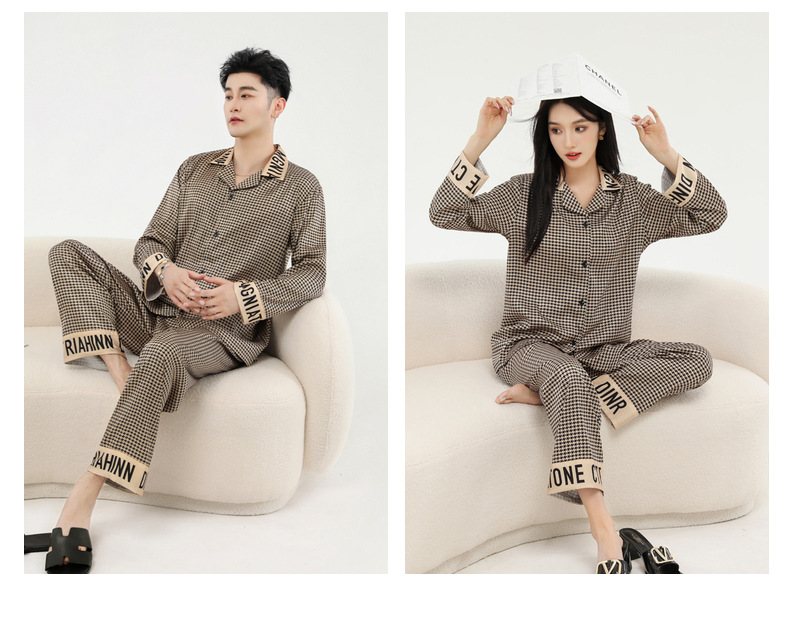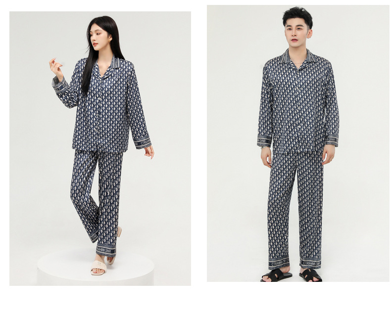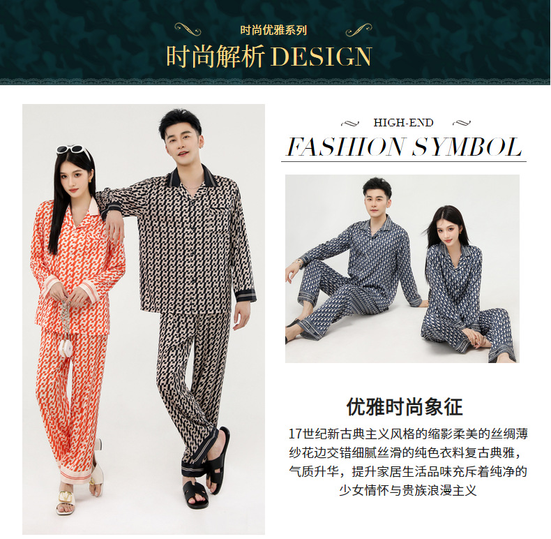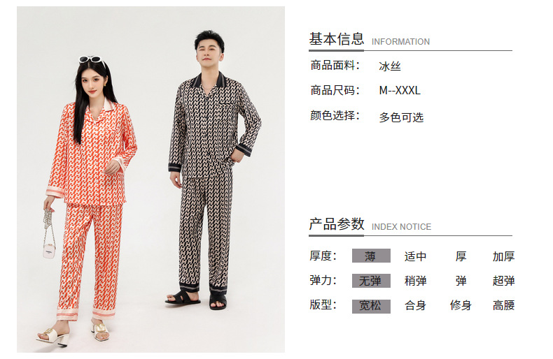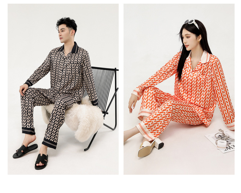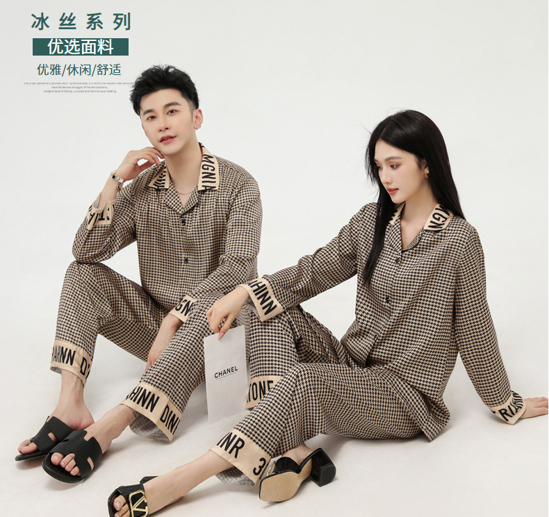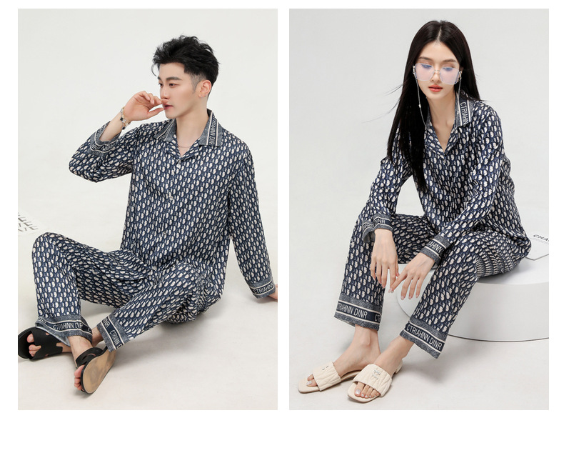 커플 잠옷 봄 가을 2022 남성의 새로운 얼음 실크 긴팔 바지 정장 얇은 여성 홈웨어 도매