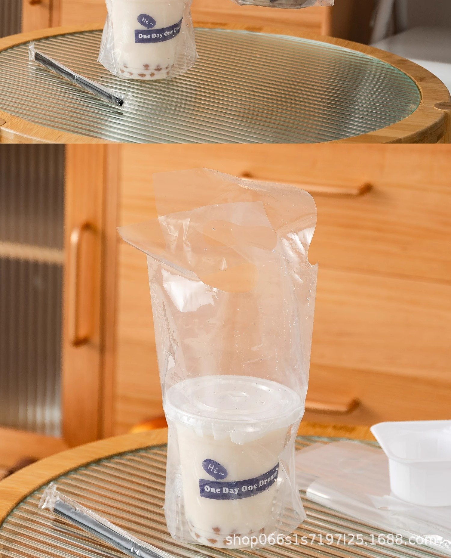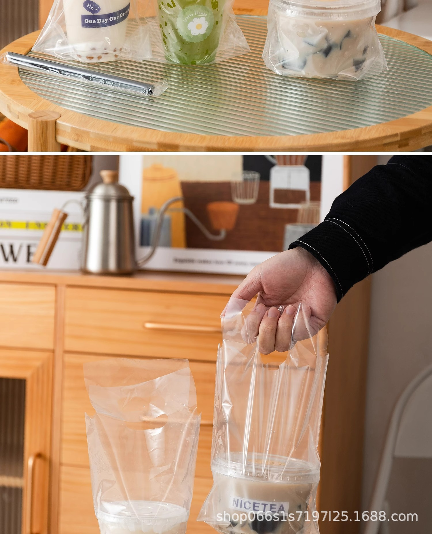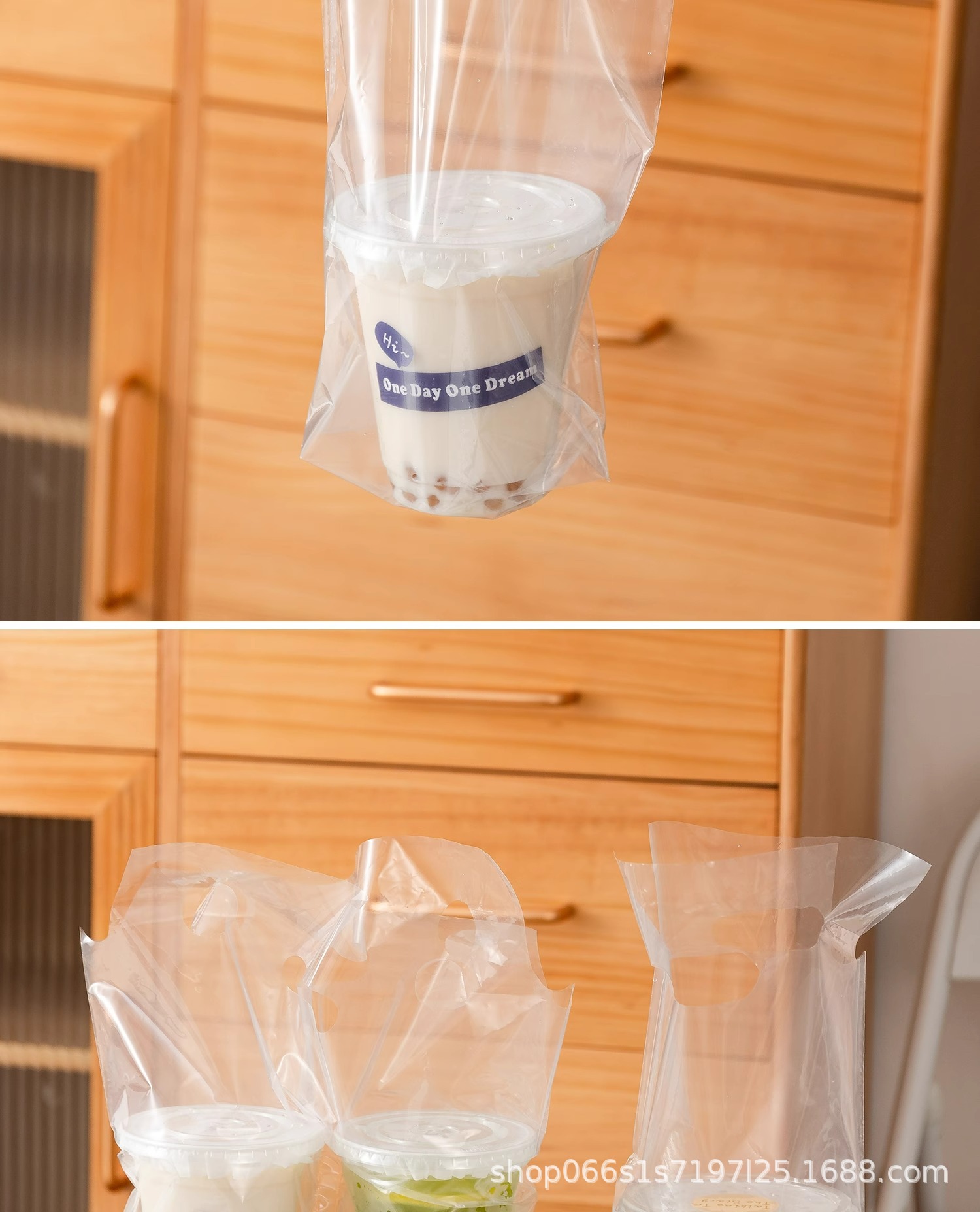 우유 차 컵 포장 가방 투명 일회용 1 컵 커피 주스 토트 백 두꺼운 음료 컵 더블 컵 토트 백