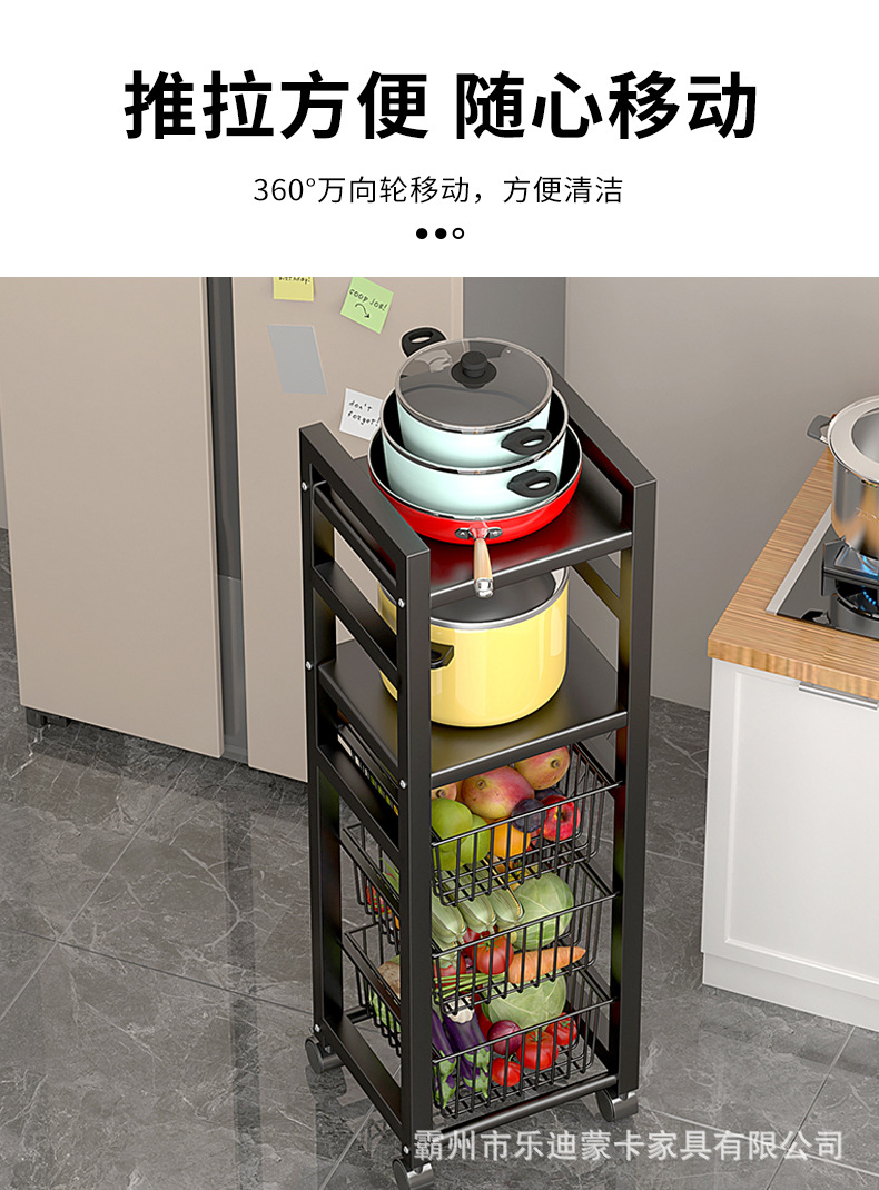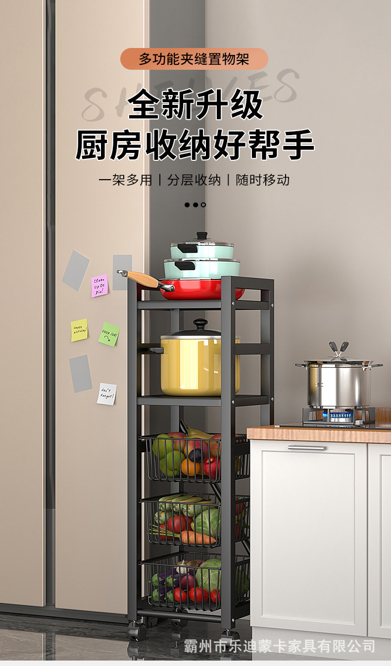 좁은 틈새에 맞는 다층 조미료 및 채소 선반, 이동식 좁은 틈새 수납 주방 정리 선반