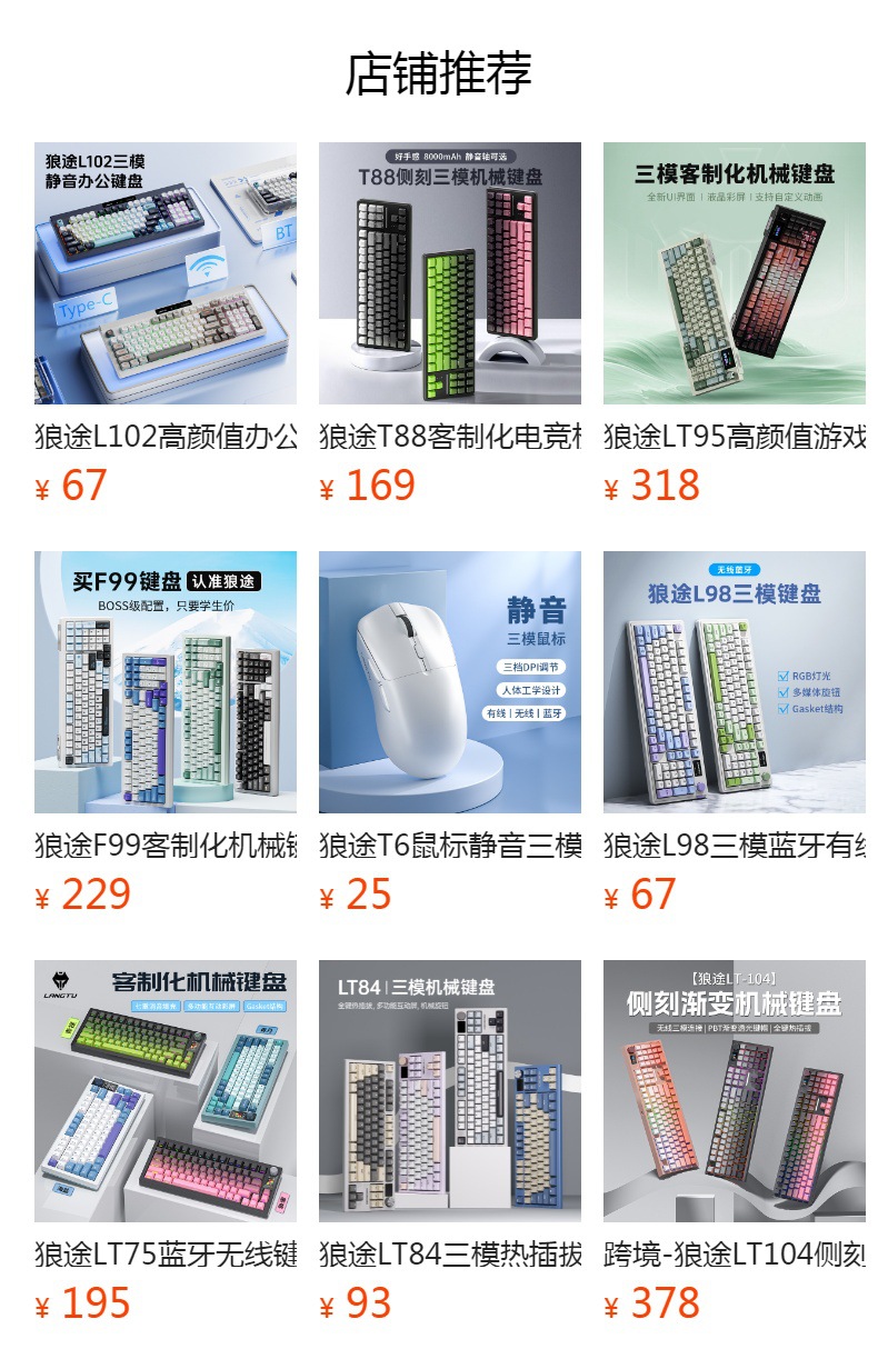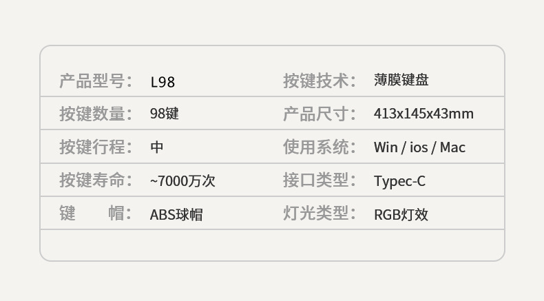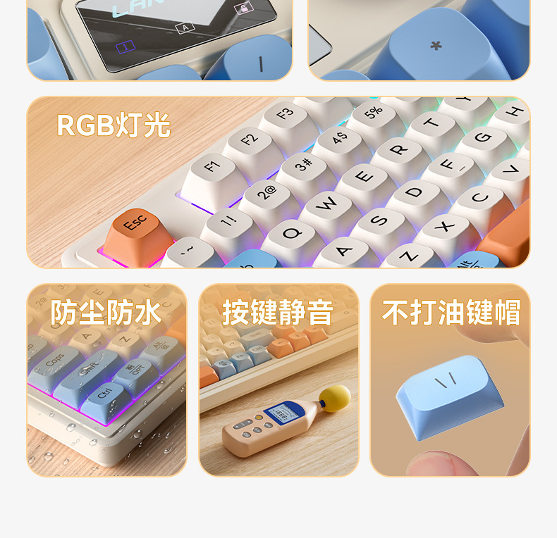 狼途L98跨境有线键盘 女生高颜值机械手感拼色RGB背光键盘