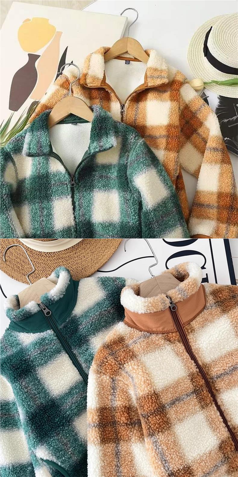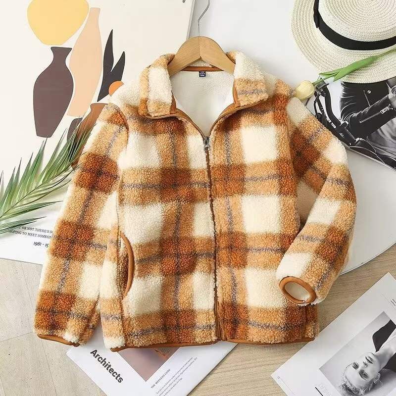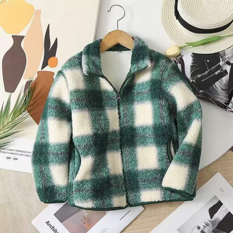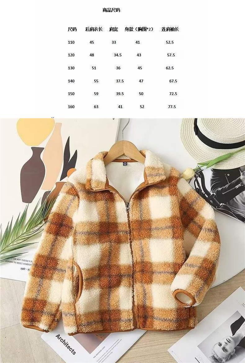 어린이 의류 부모-자식 겨울 소년 소녀 2023 격자 무늬 재킷 방풍 폴라 양털 지퍼 재킷 461149 착용스토어 가기