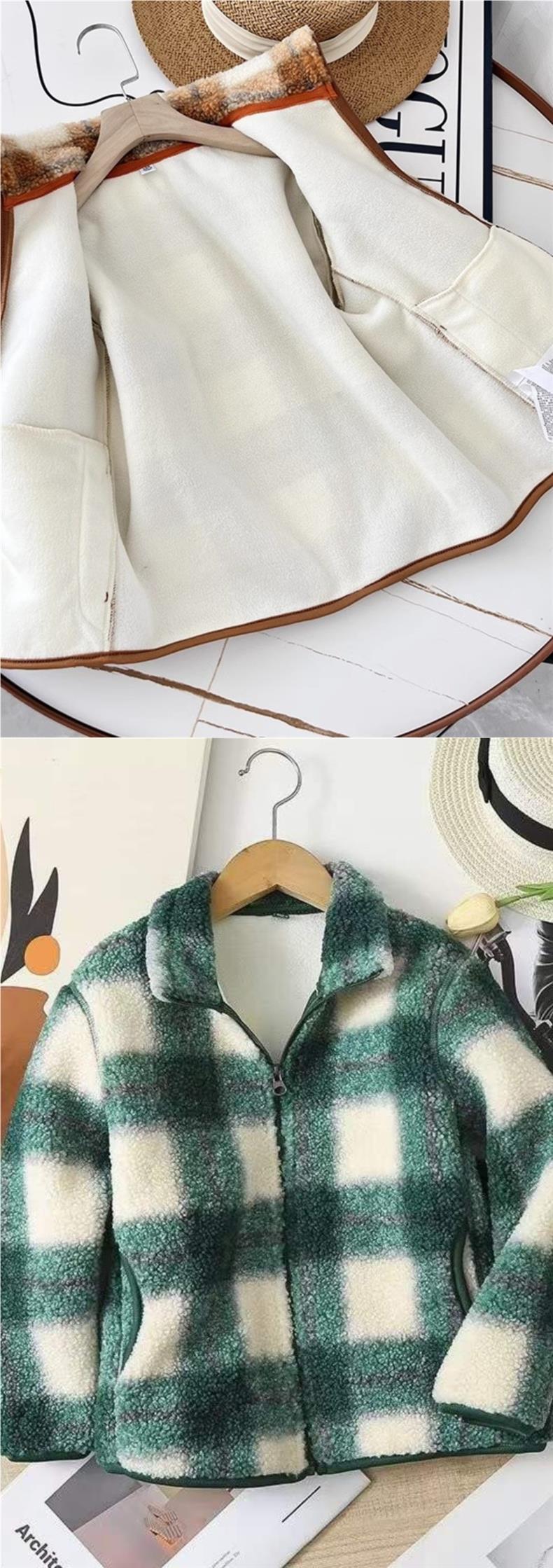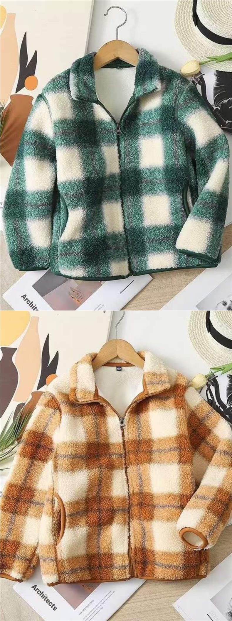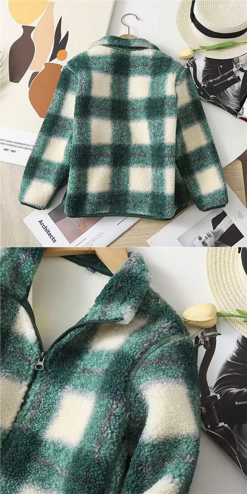 어린이 의류 부모-자식 겨울 소년 소녀 2023 격자 무늬 재킷 방풍 폴라 양털 지퍼 재킷 461149 착용스토어 가기