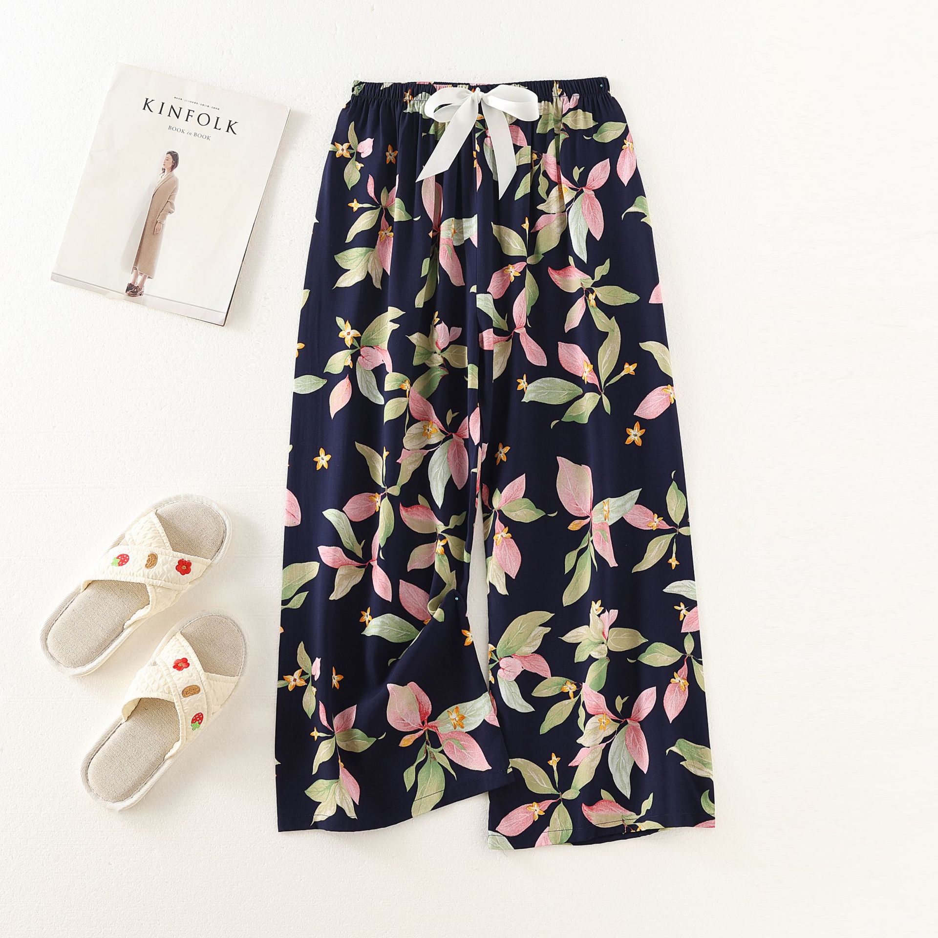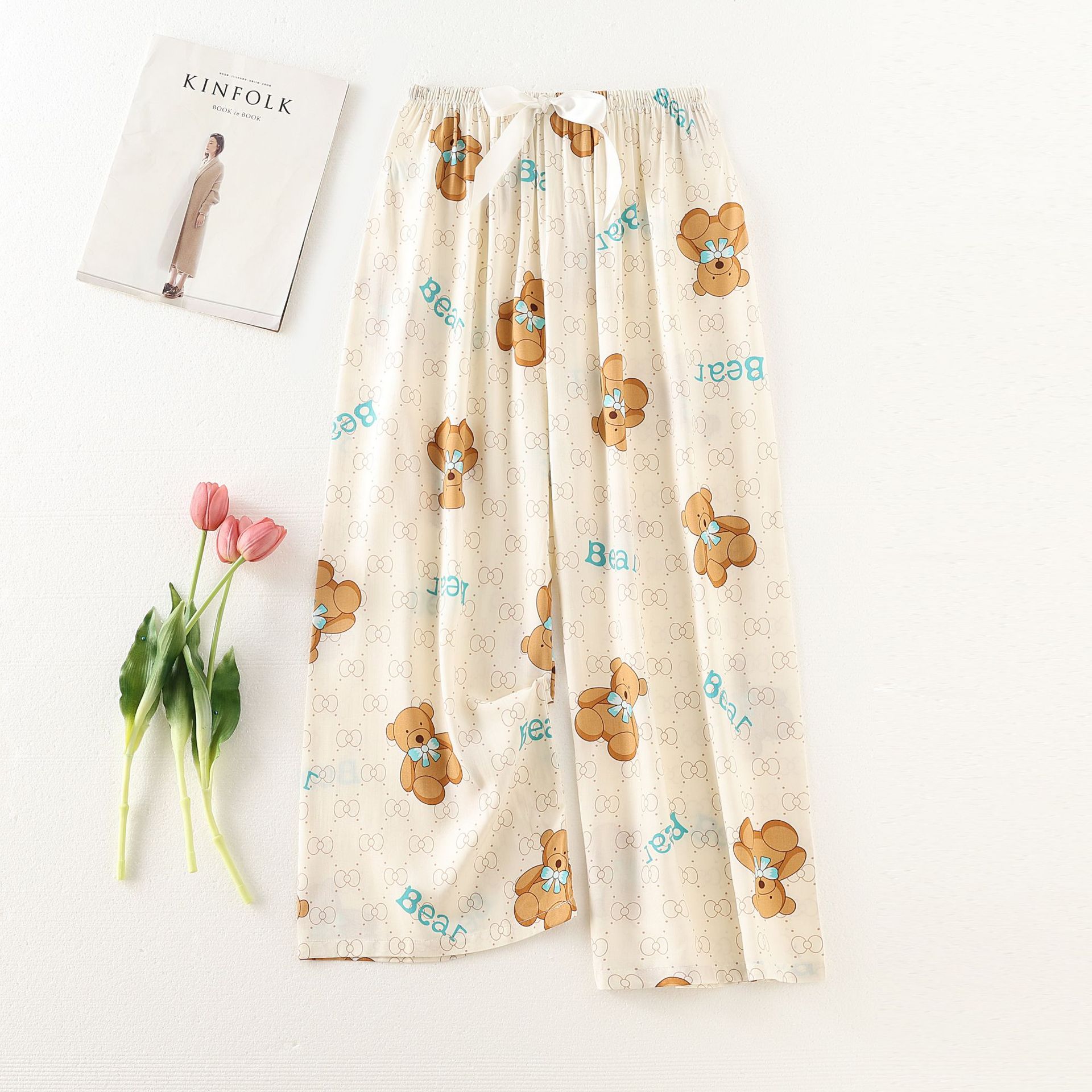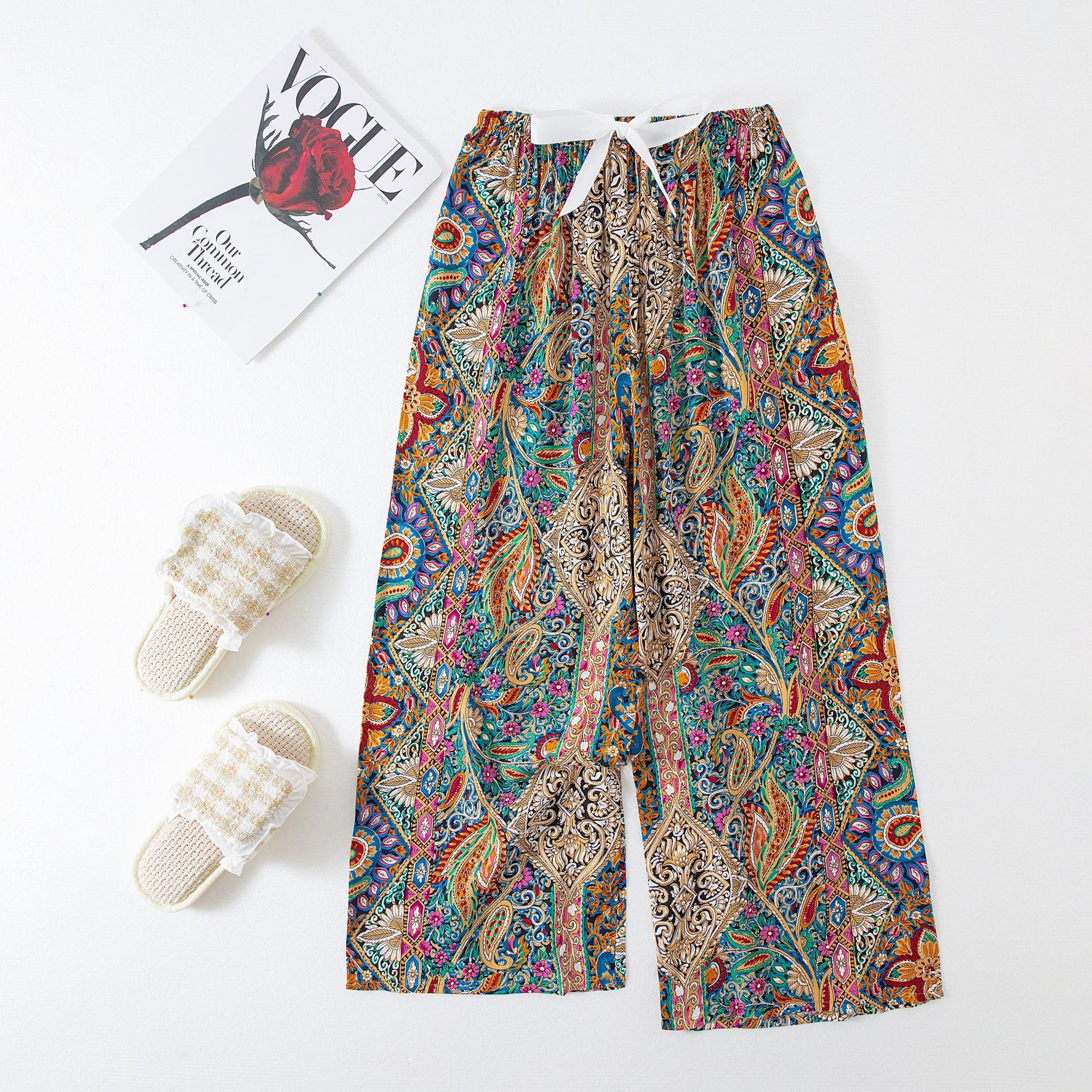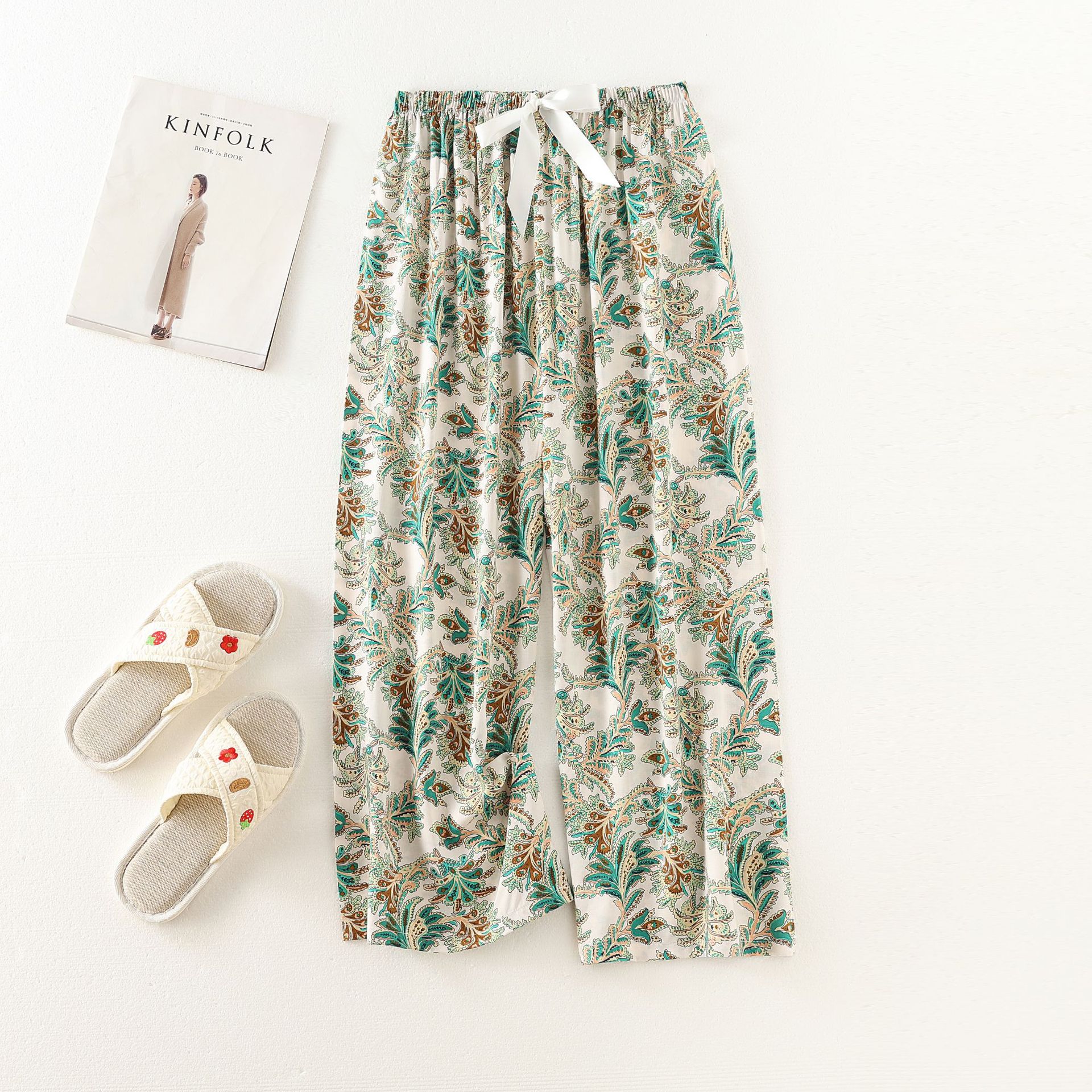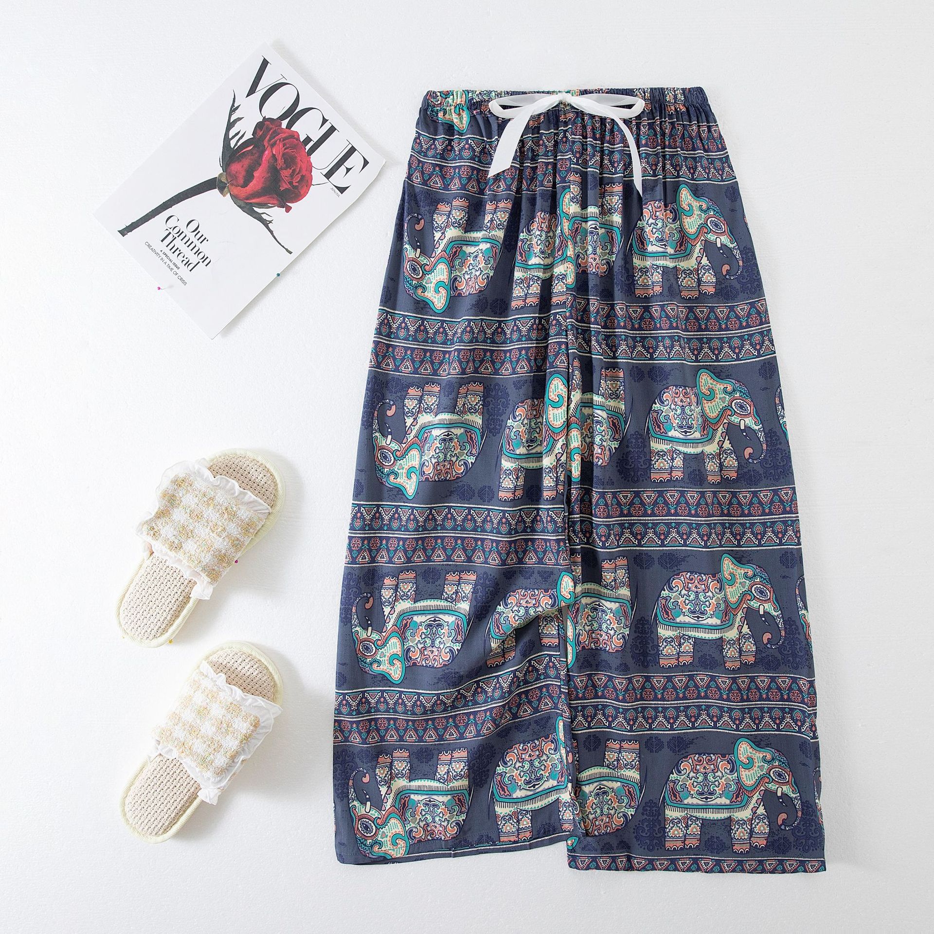 여성 면 실크 파자마 바지 봄과 여름 인공 면 비치 바지는 대형 면 실크 홈 옷을 입을 수 있습니다.스토어 가기