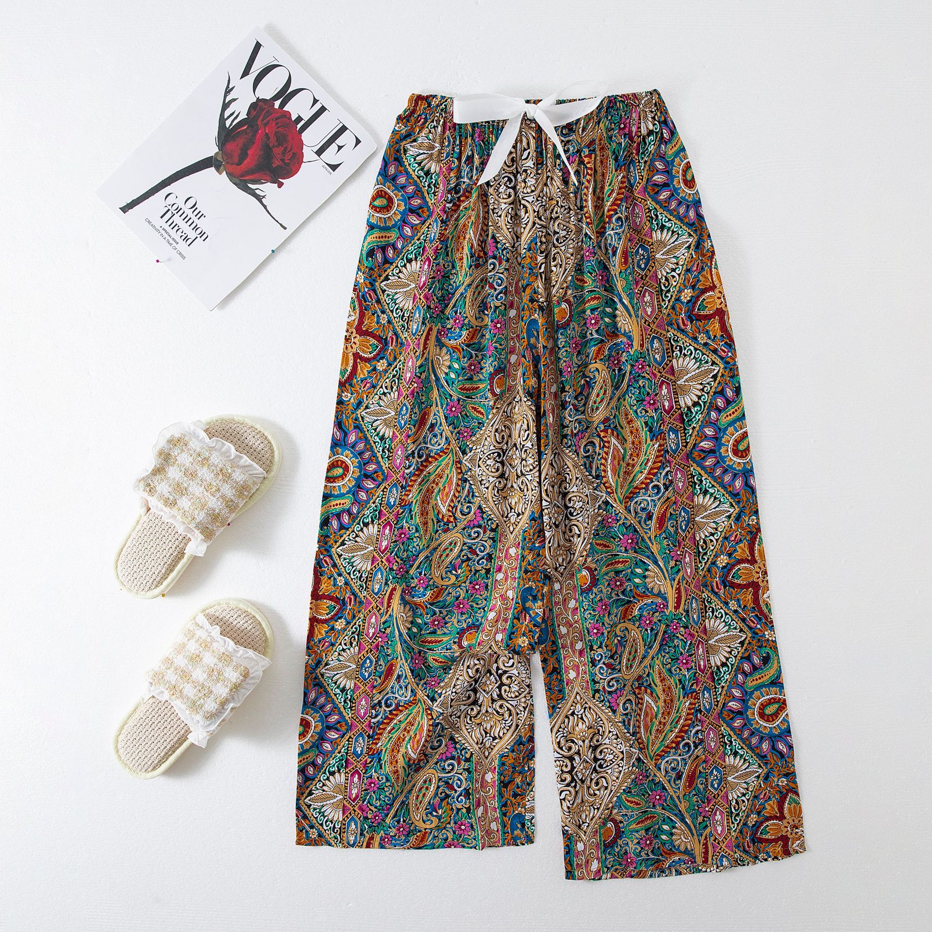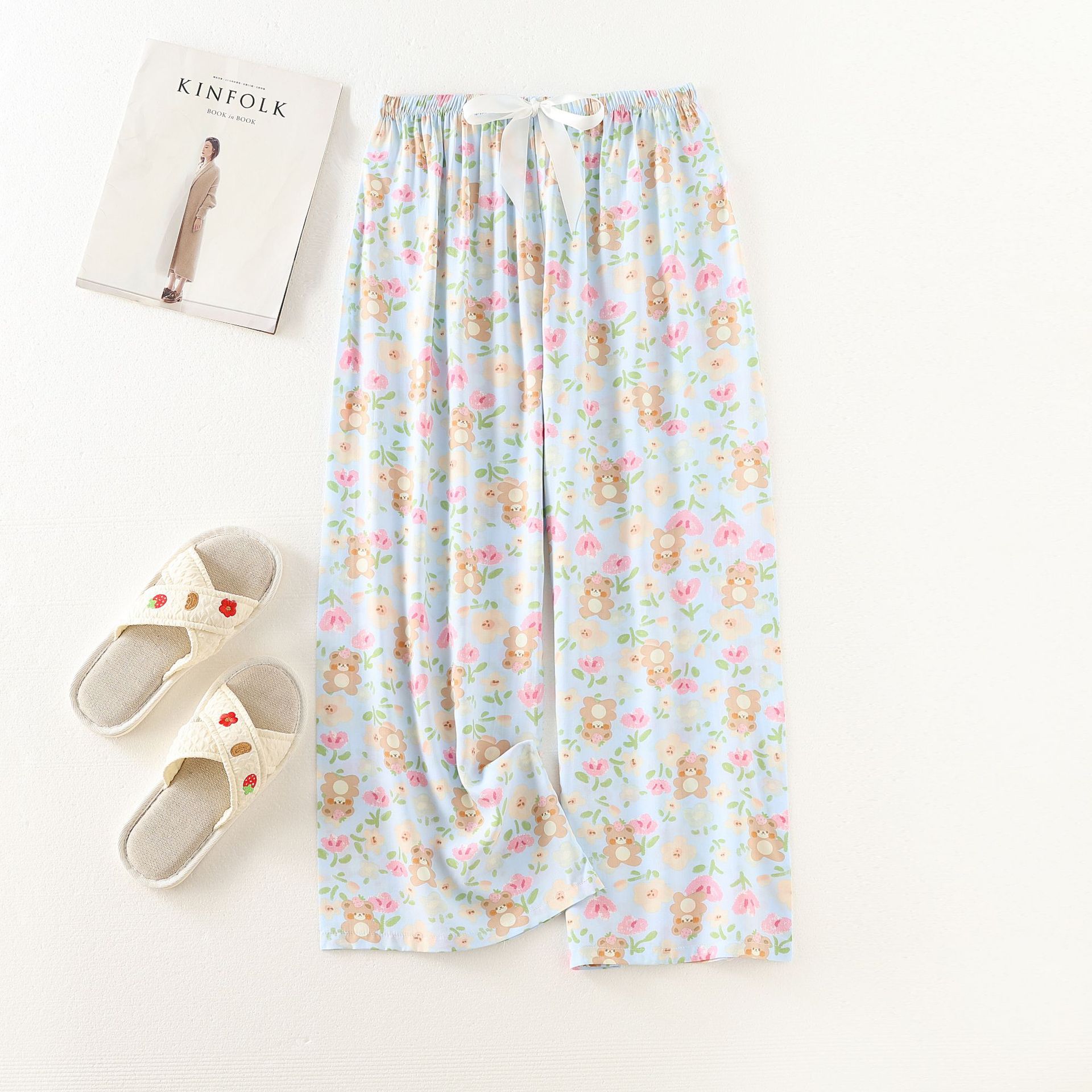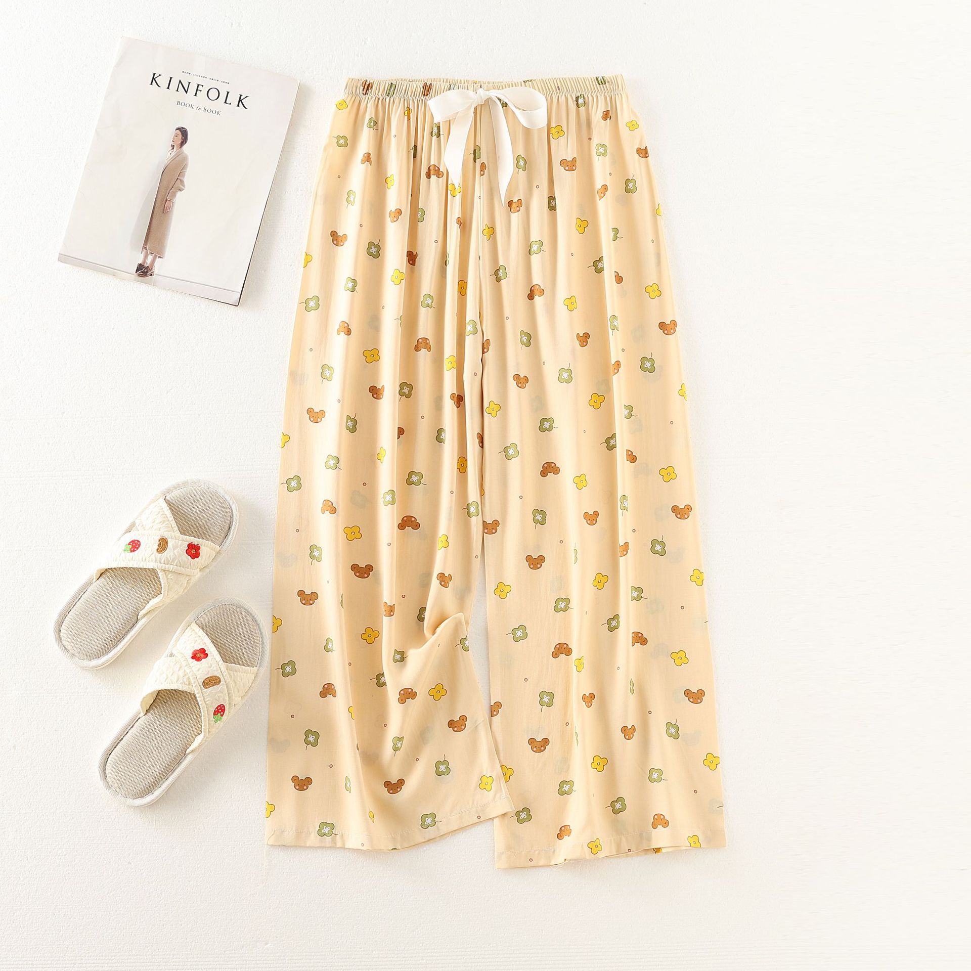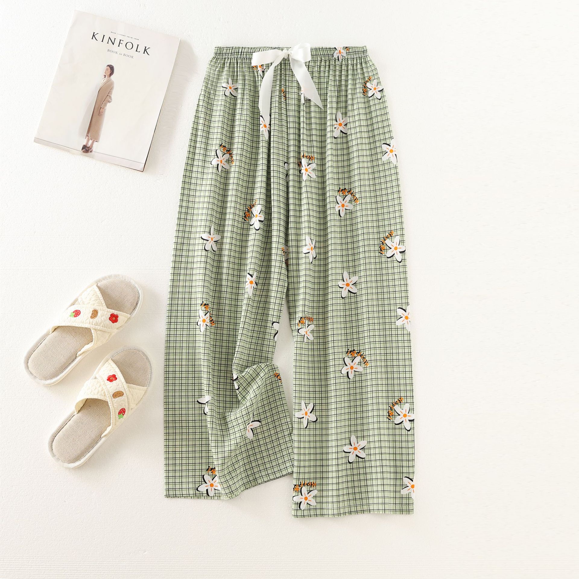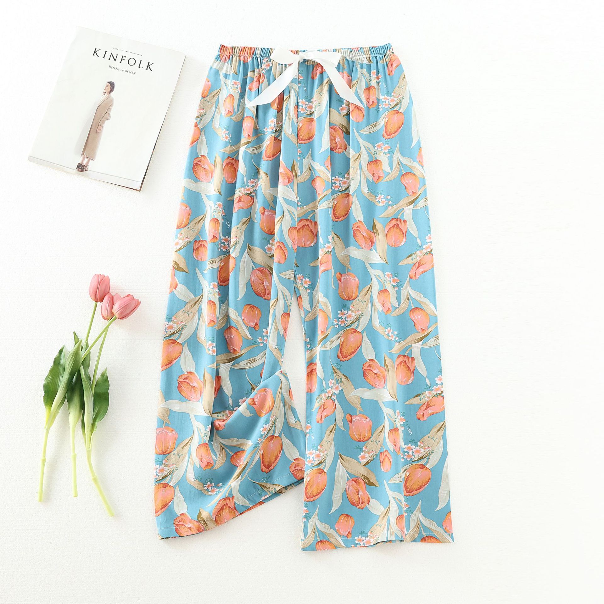 여성 면 실크 파자마 바지 봄과 여름 인공 면 비치 바지는 대형 면 실크 홈 옷을 입을 수 있습니다.스토어 가기