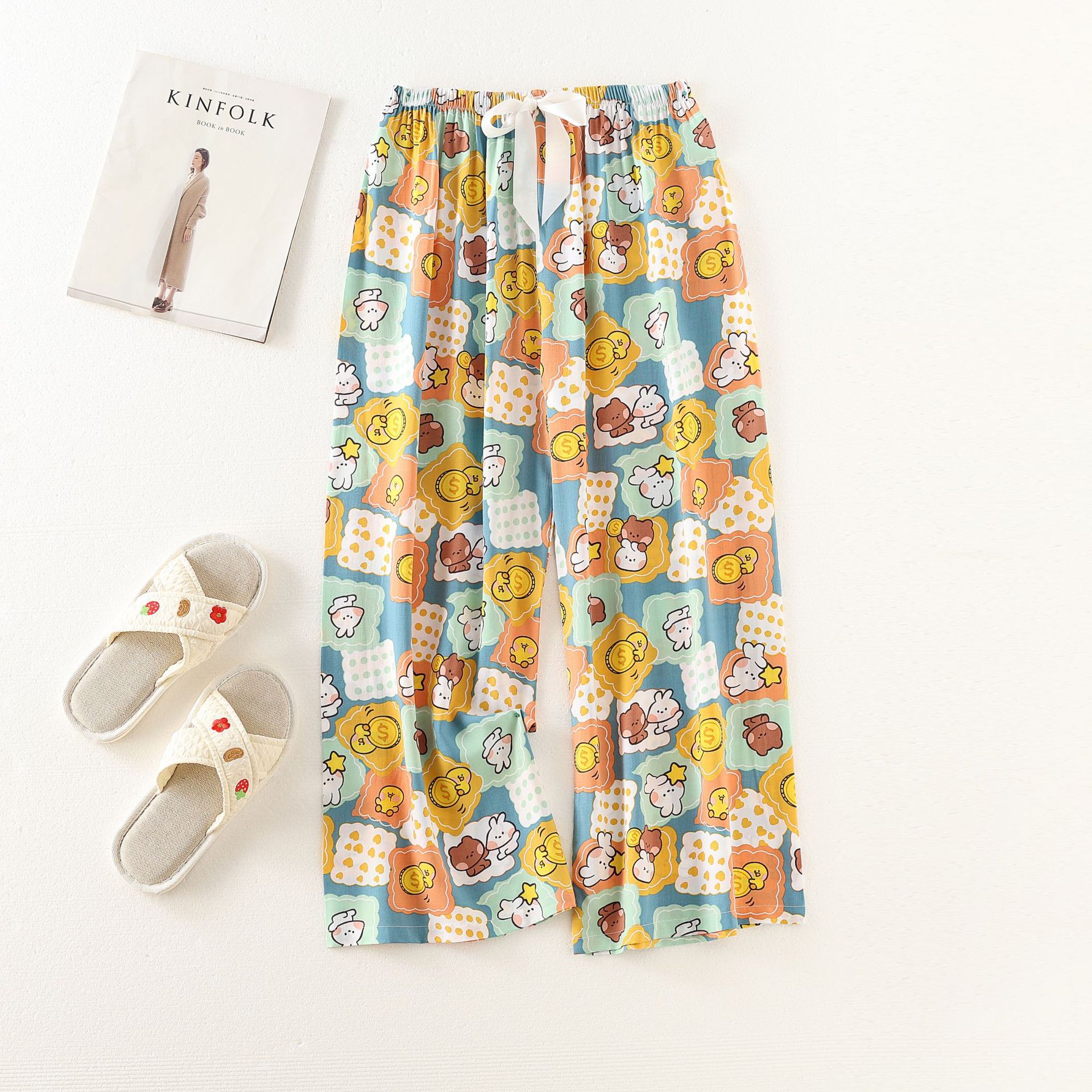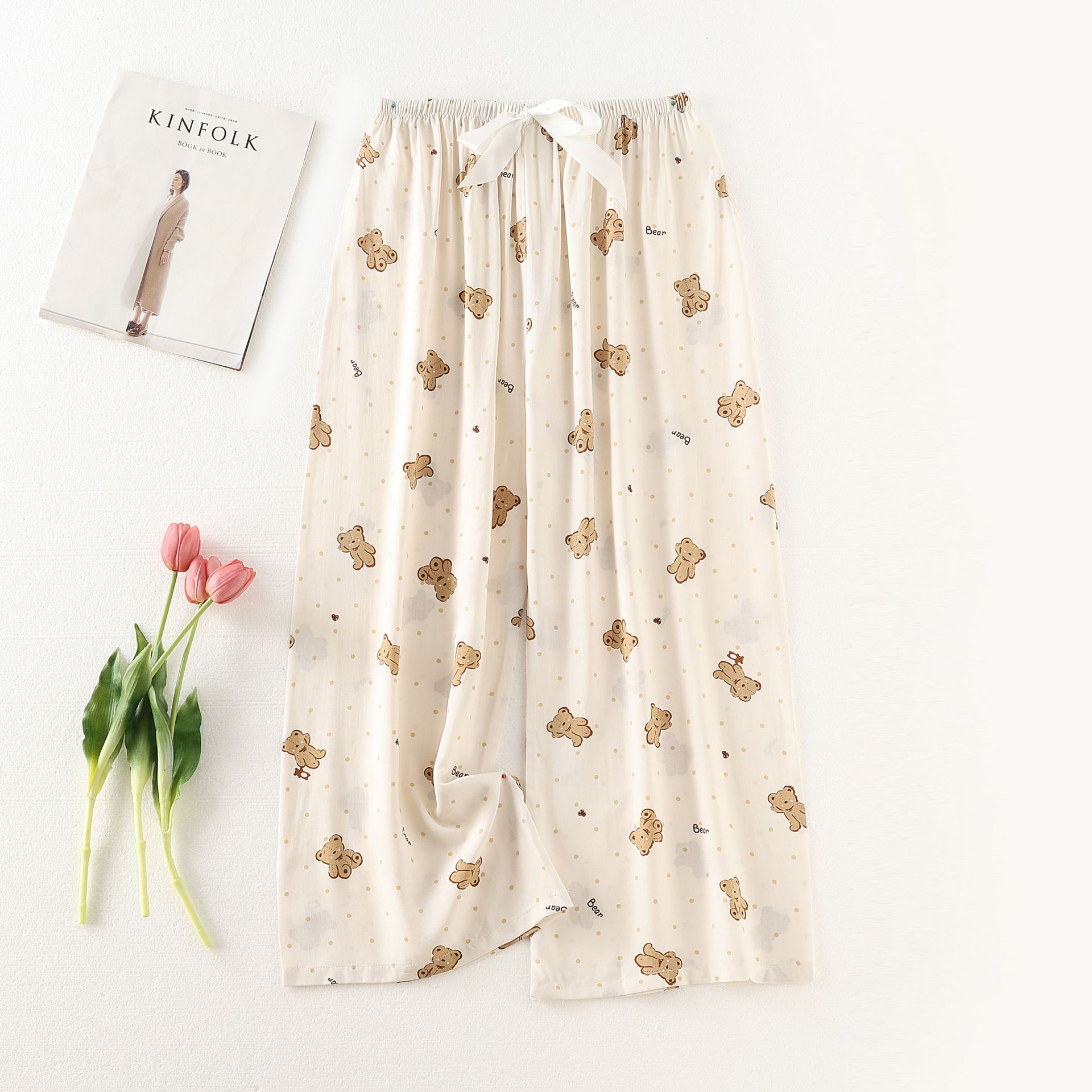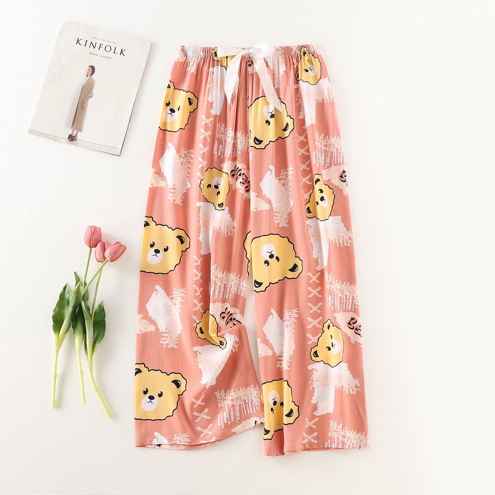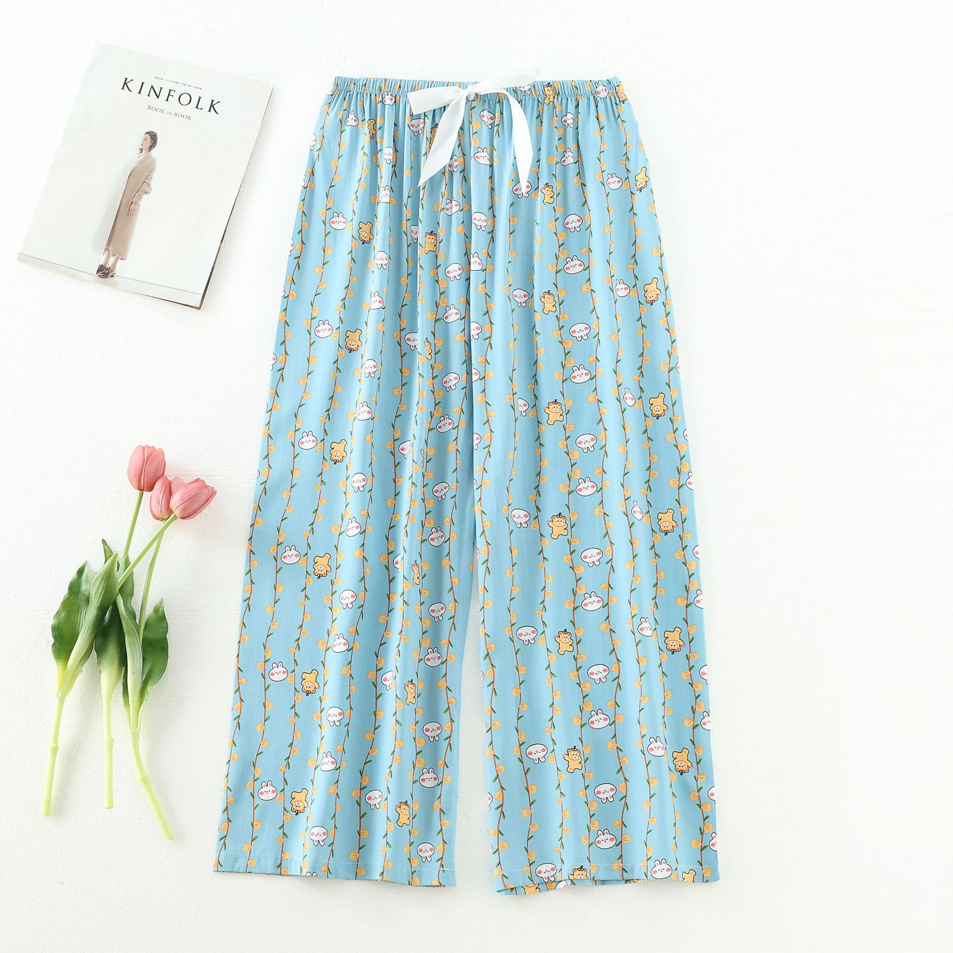 여성 면 실크 파자마 바지 봄과 여름 인공 면 비치 바지는 대형 면 실크 홈 옷을 입을 수 있습니다.스토어 가기