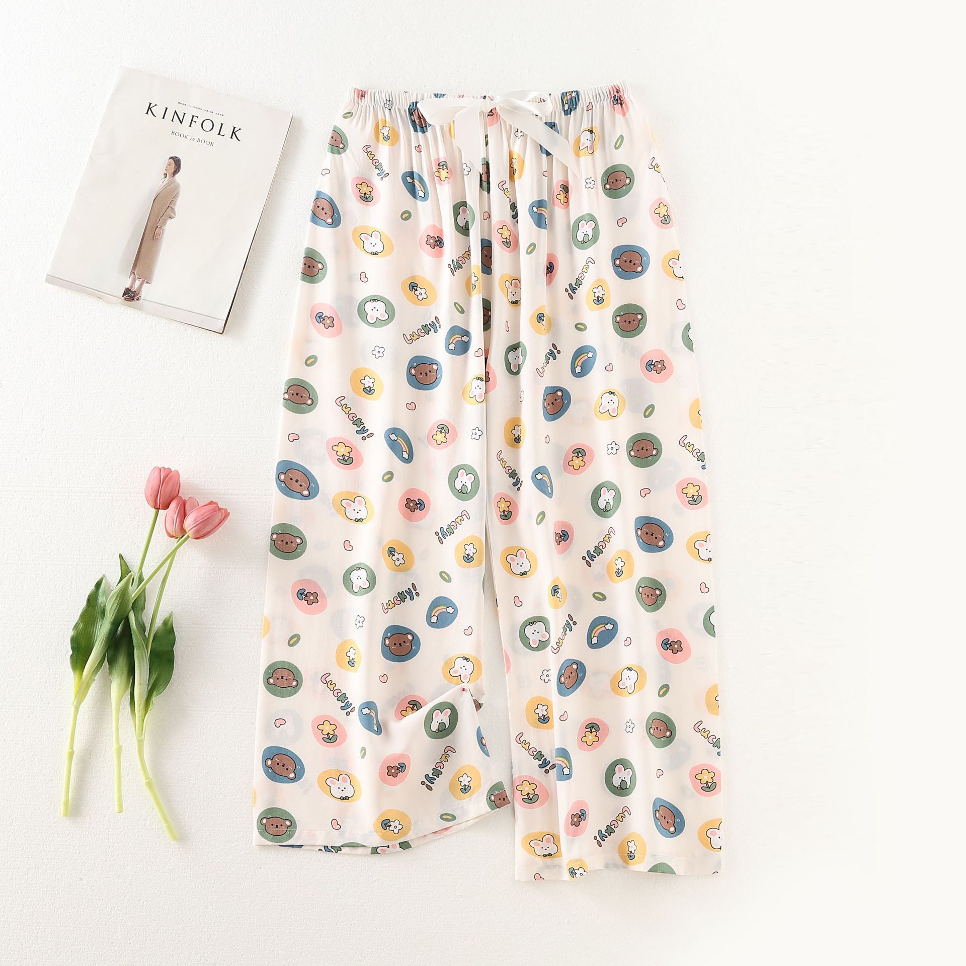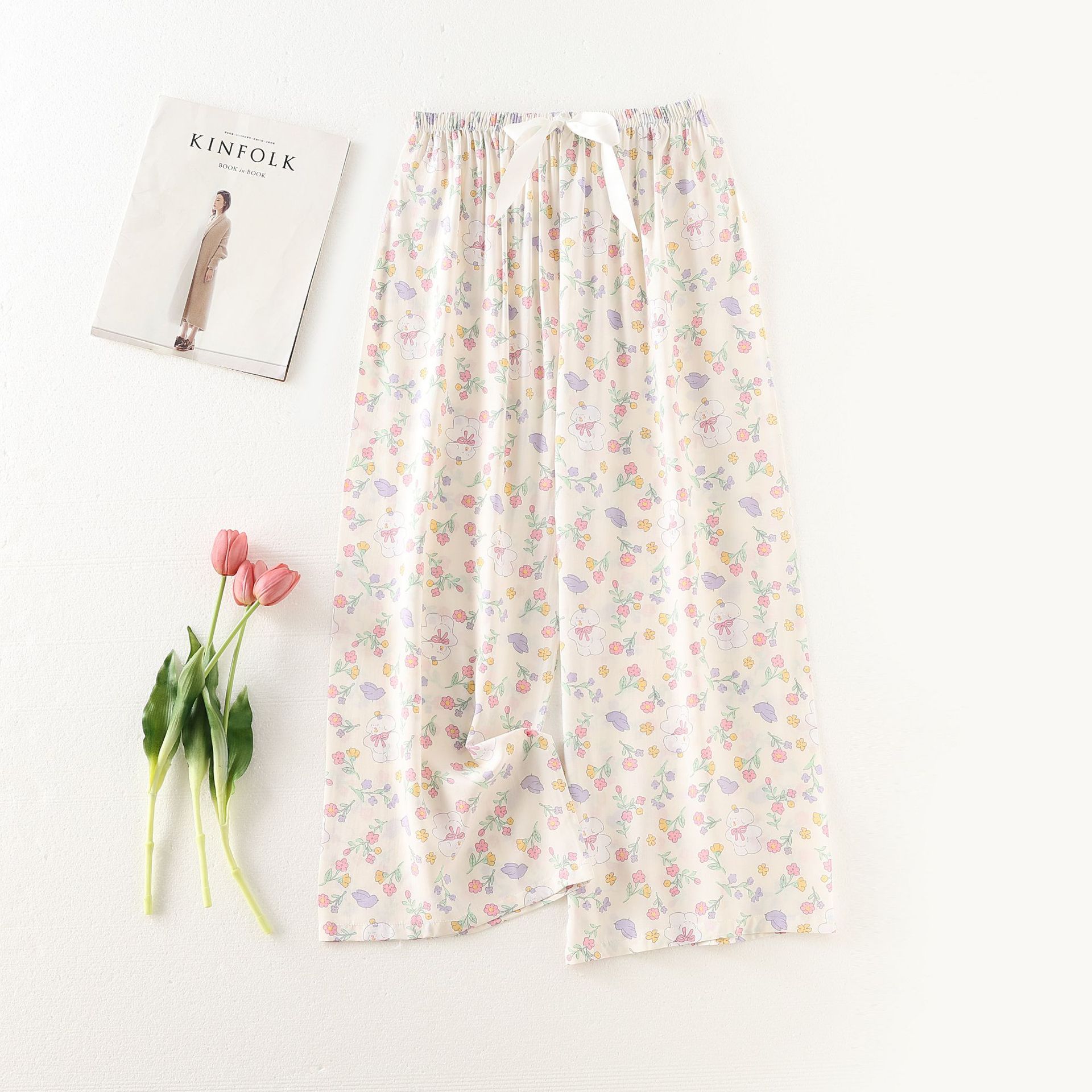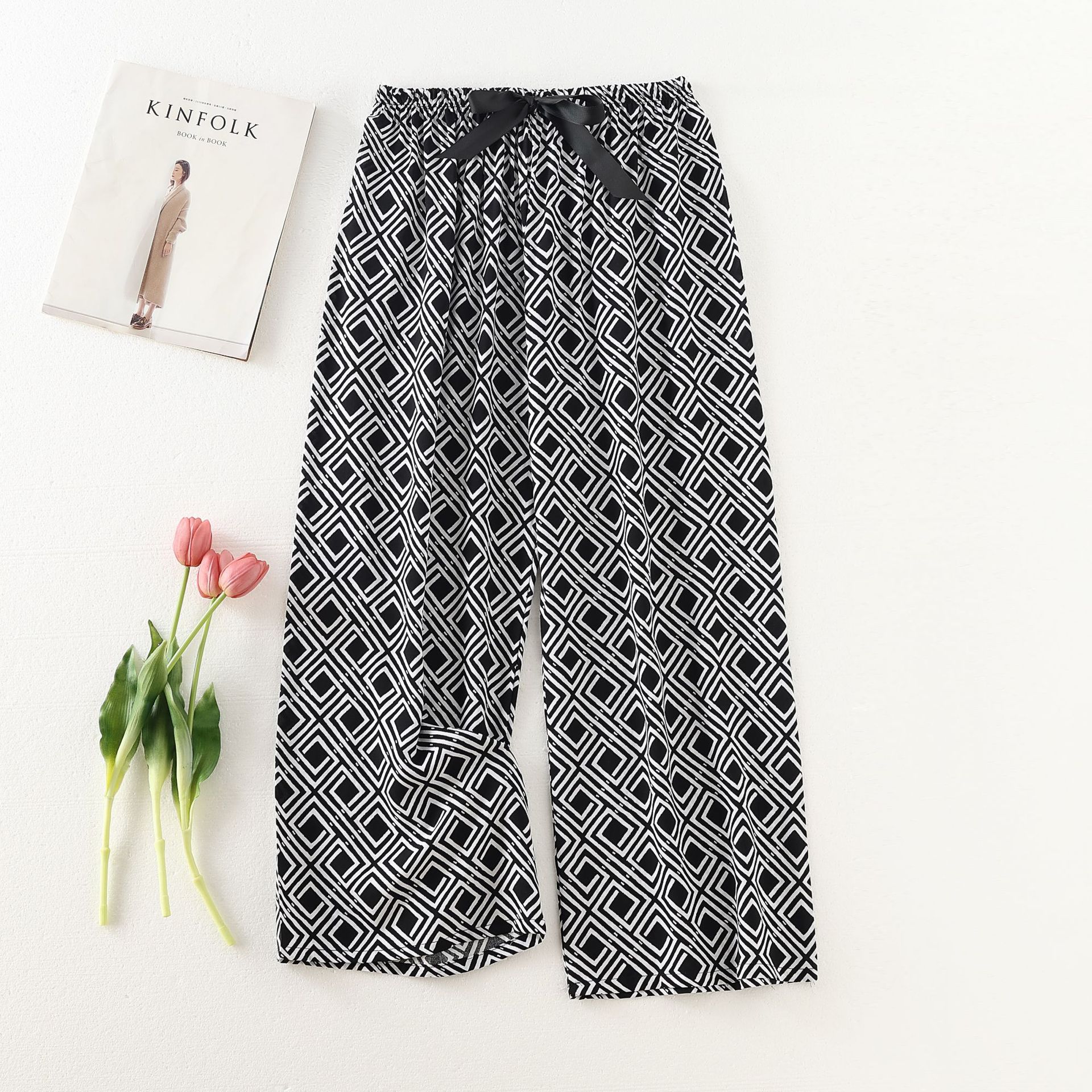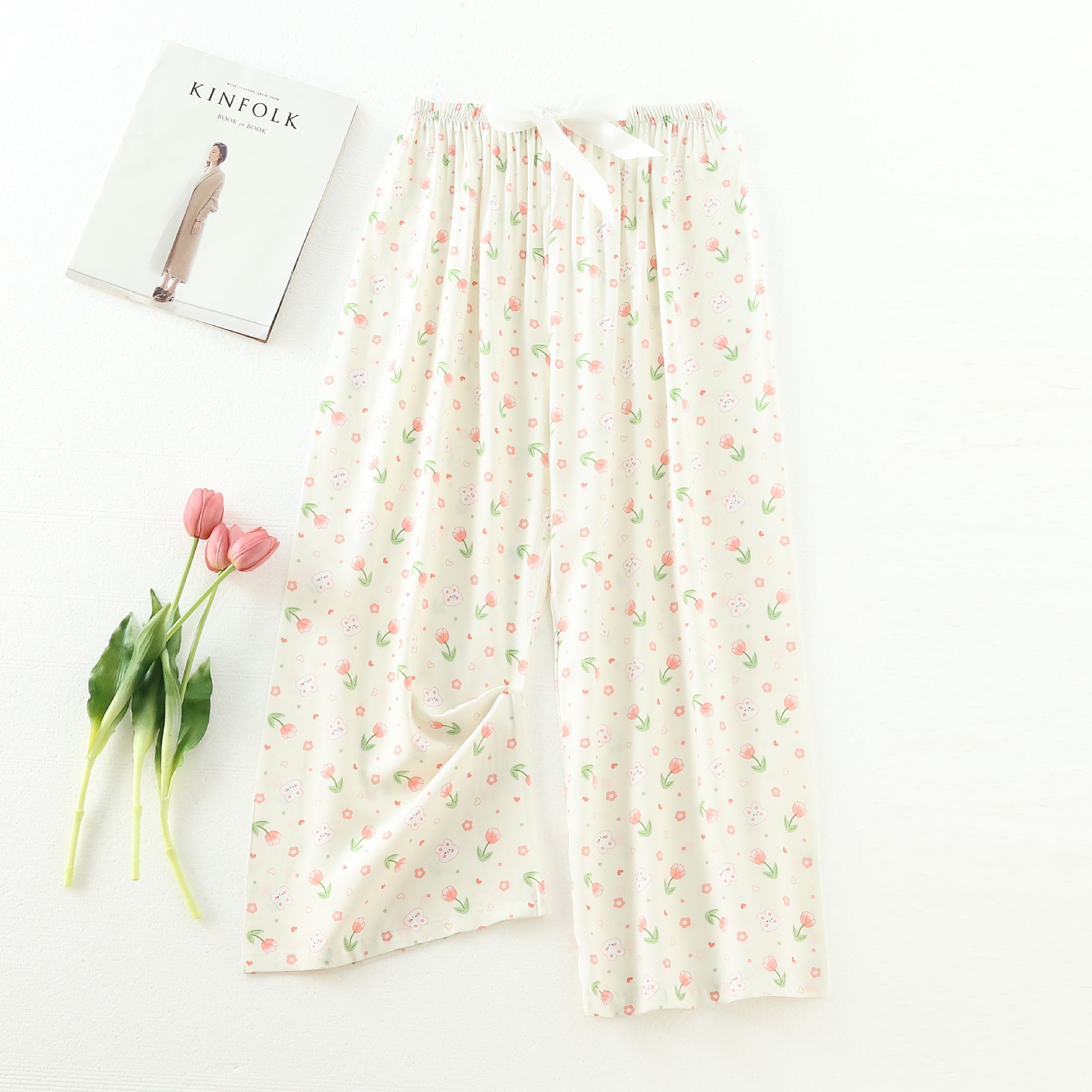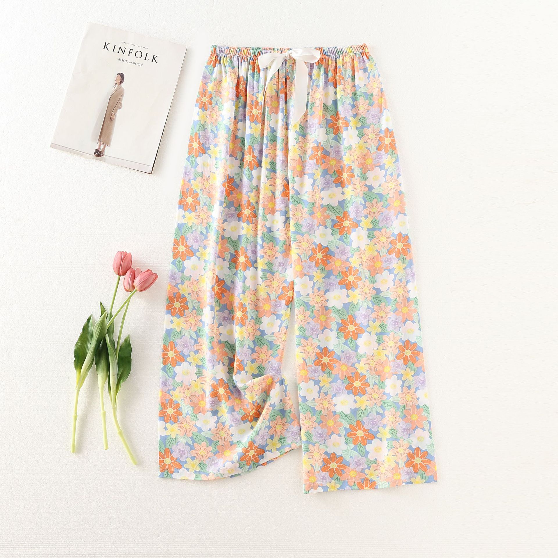 여성 면 실크 파자마 바지 봄과 여름 인공 면 비치 바지는 대형 면 실크 홈 옷을 입을 수 있습니다.스토어 가기