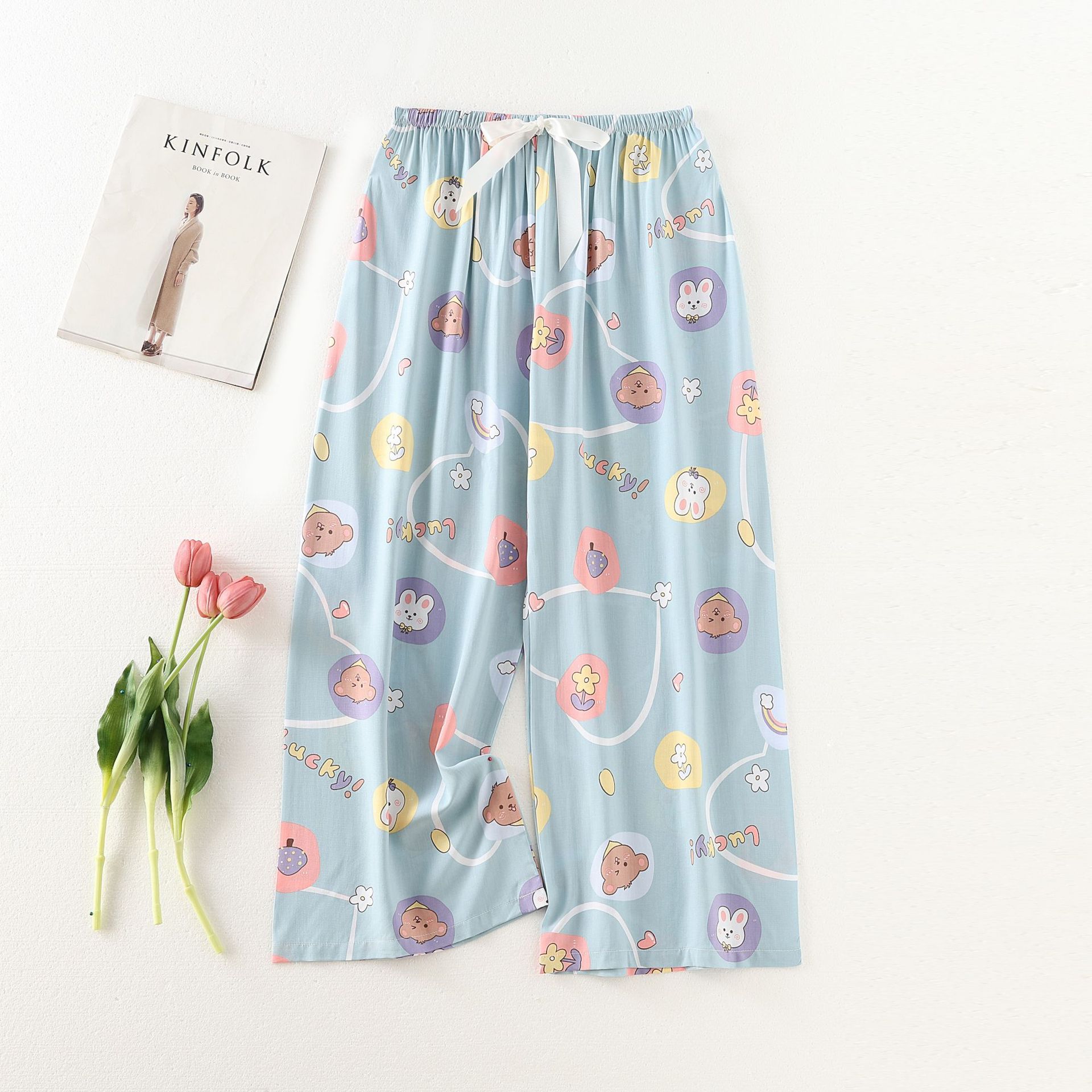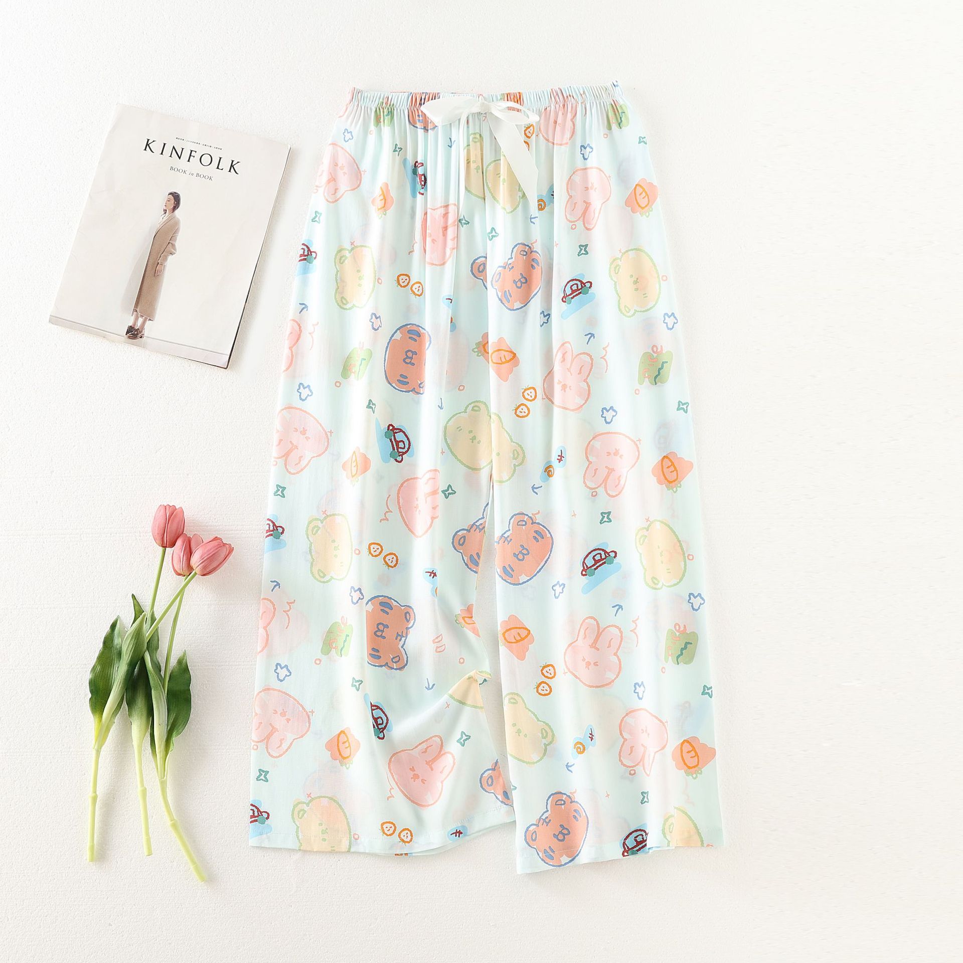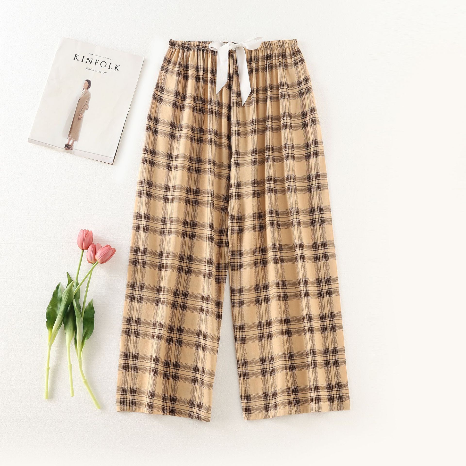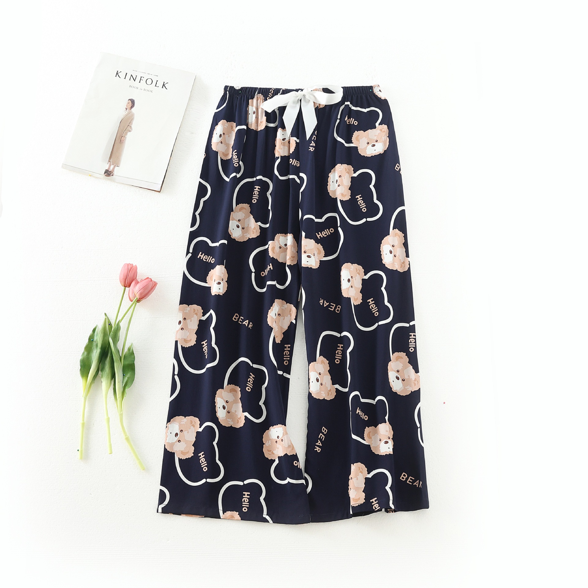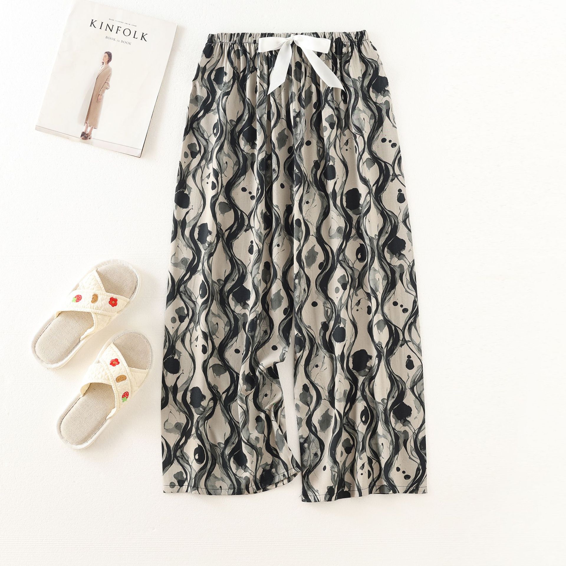 여성 면 실크 파자마 바지 봄과 여름 인공 면 비치 바지는 대형 면 실크 홈 옷을 입을 수 있습니다.스토어 가기