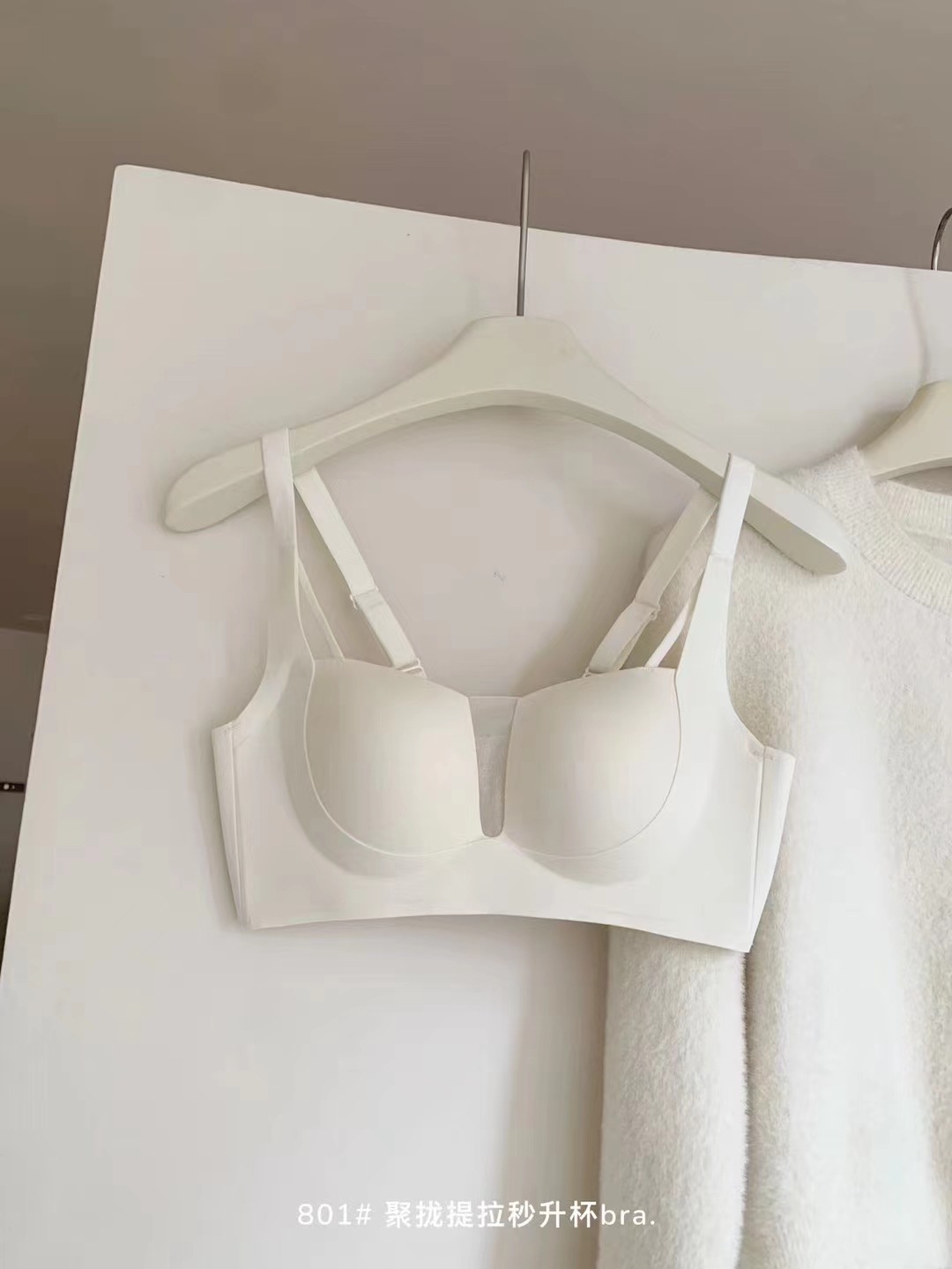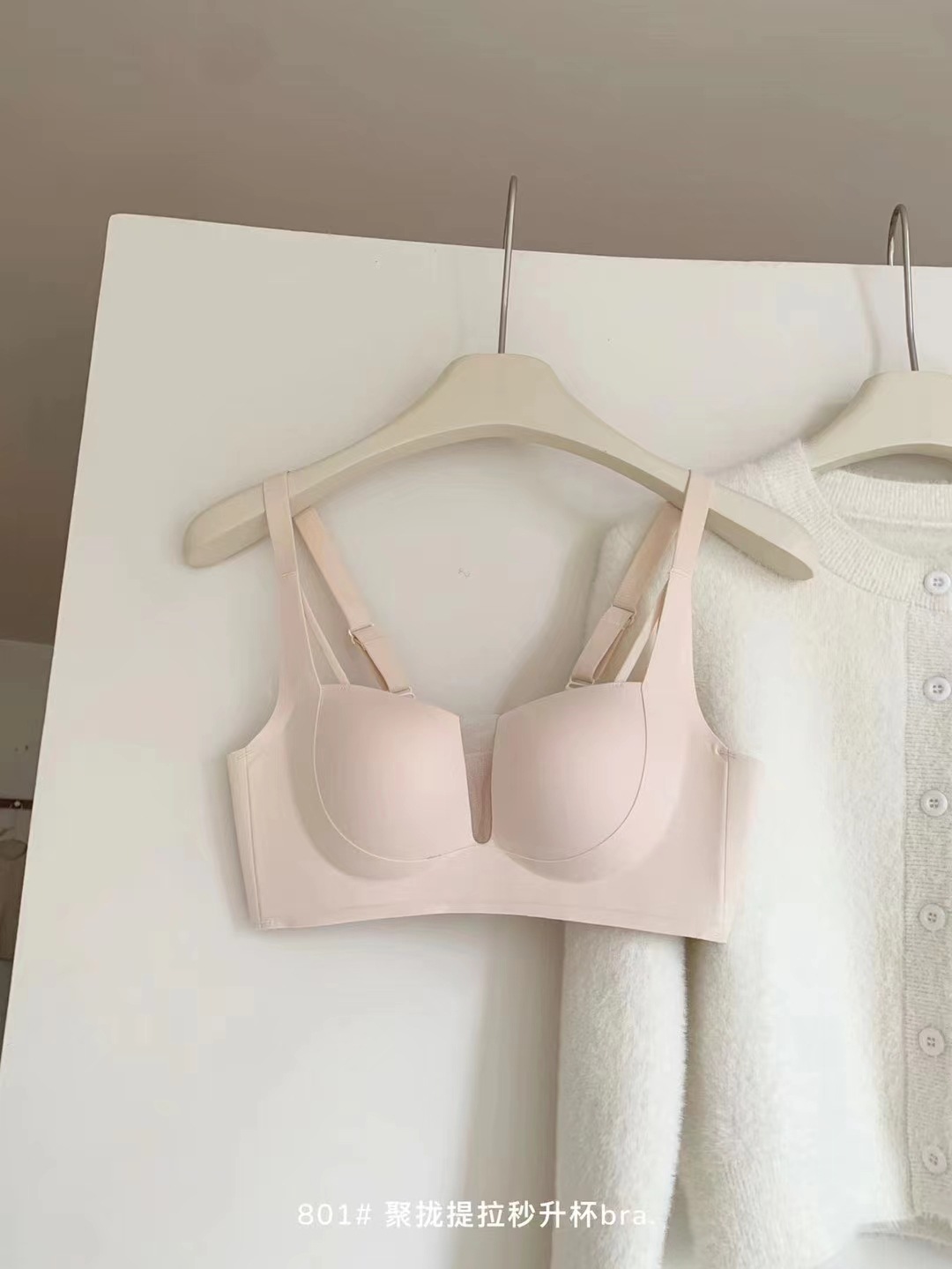 801聚拢提拉秒升杯奶糯糯的触感触感舒适深V拼接网纱无痕养护内衣