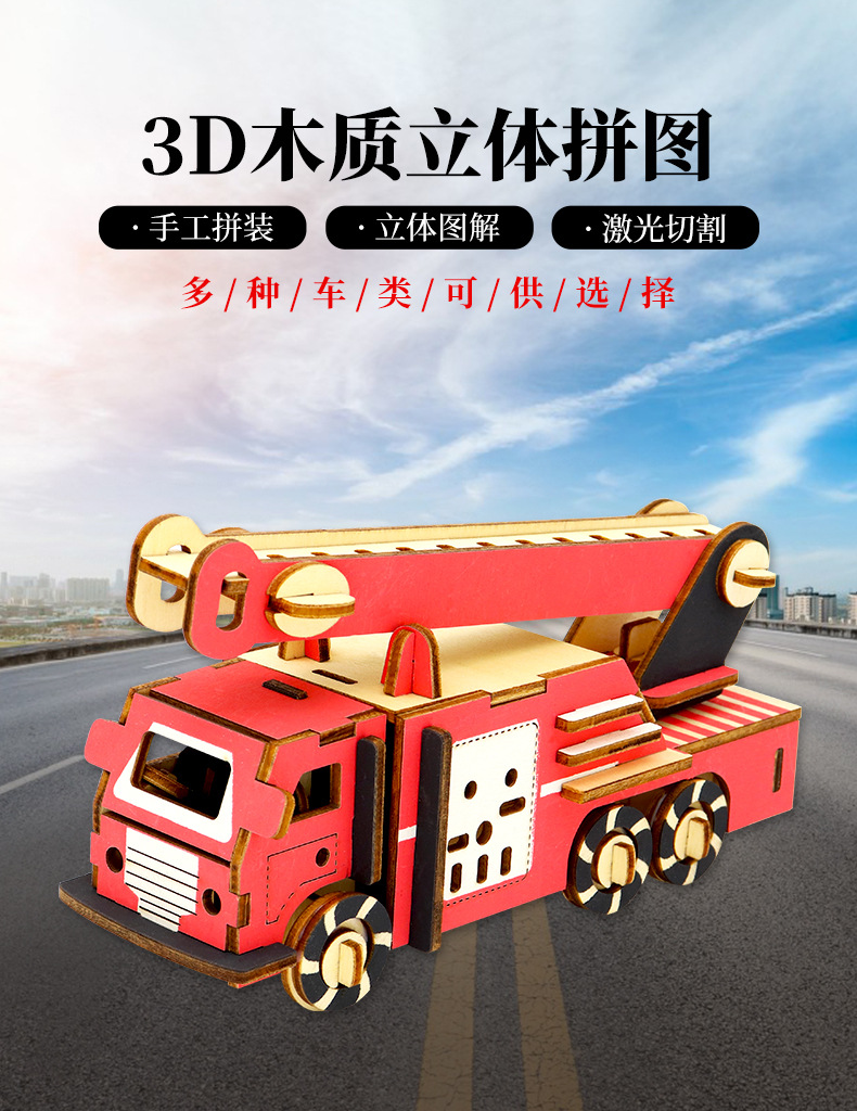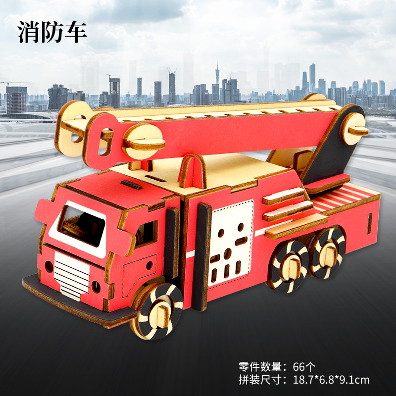 어린이 자동차 장난감 소방차 나무 3 차원 퍼즐 3D 조립 자동차 모델 소년 퍼즐 빌딩 블록스토어 가기