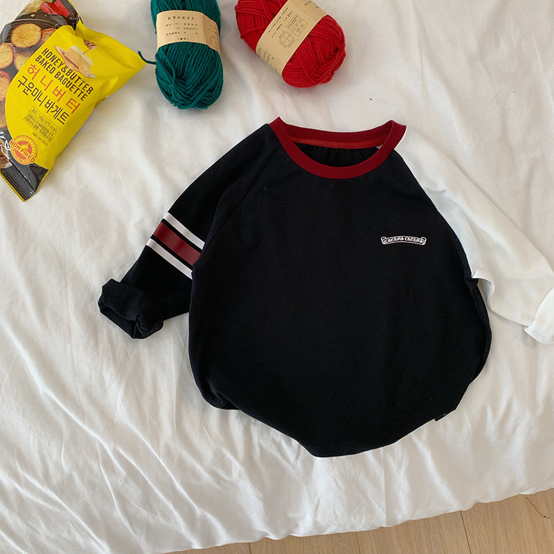 Tong Chenchen Mom Spring Wear 아동용 퓨어 코튼 티셔츠 트렌디 브랜드 남성 아동복 긴팔 유행 유행하는 비정규 탑 올 매치스토어 가기