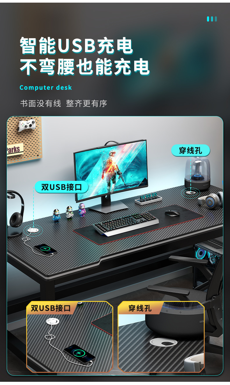 컴퓨터 책상 간단한 홈 e-스포츠 테이블 작은 아파트 탄소 섬유 질감 책상 학생 학습 테이블 침실 책상스토어 가기