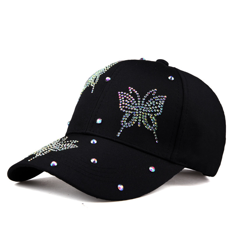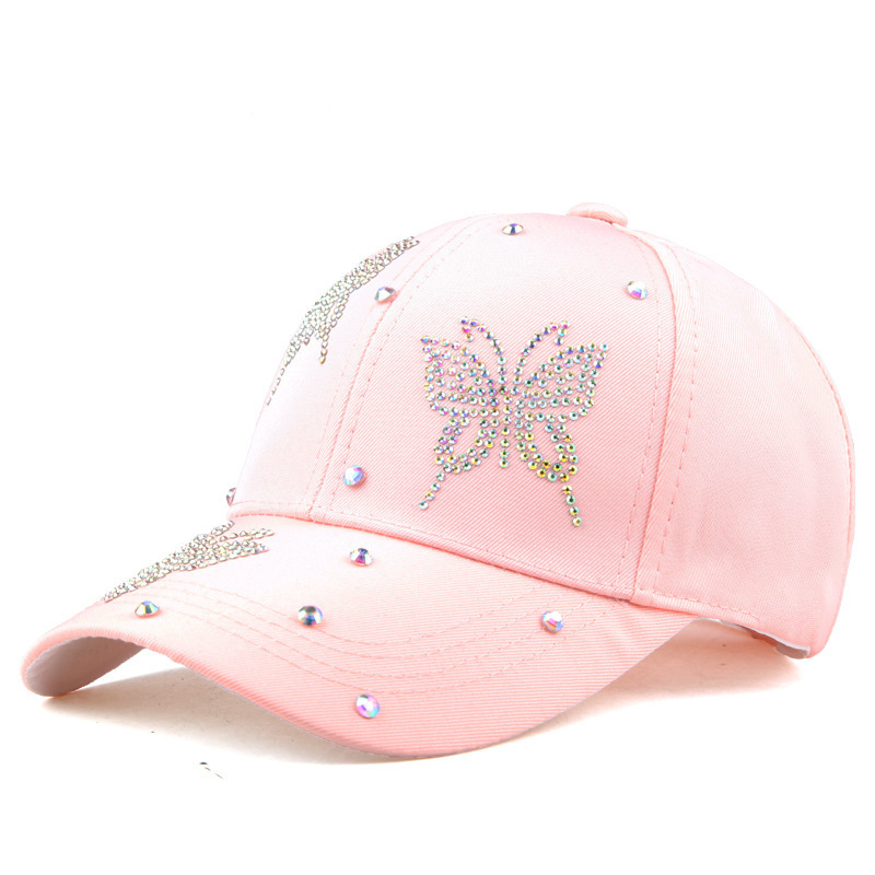 이순이 모자 여자 여름 야구 모자 패션 태양 모자 여자 한국식 올 매치 나비 모조 다이아몬드 캐주얼 정점 모자