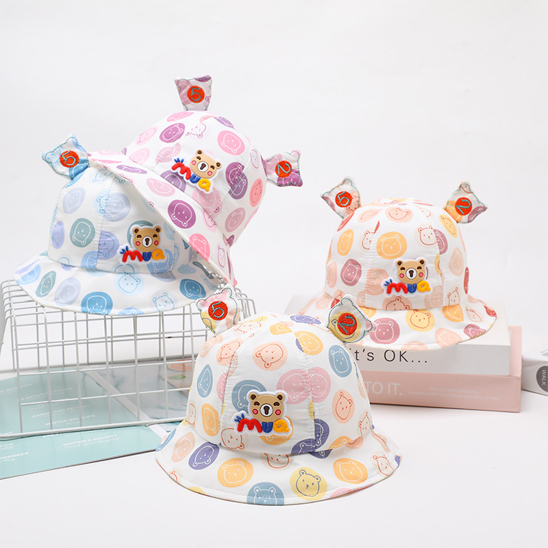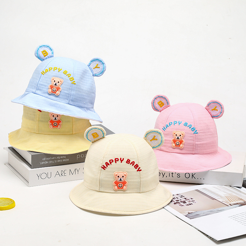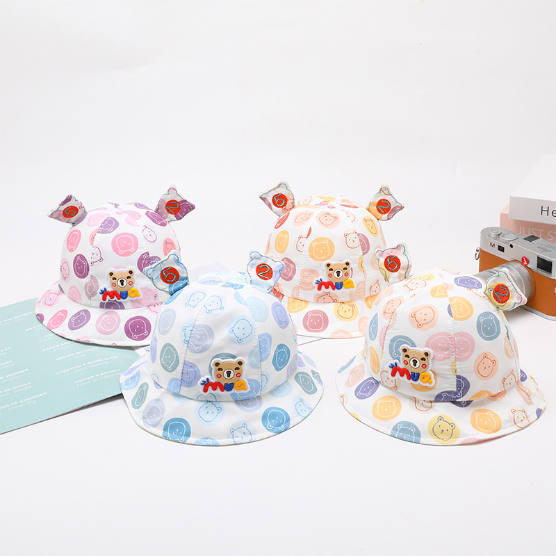 어린이 어부 모자 아기 귀여운 만화 곰 면화 소년과 소녀 레저 봄과 가을 얇은 넓은 유역 모자 차양스토어 가기