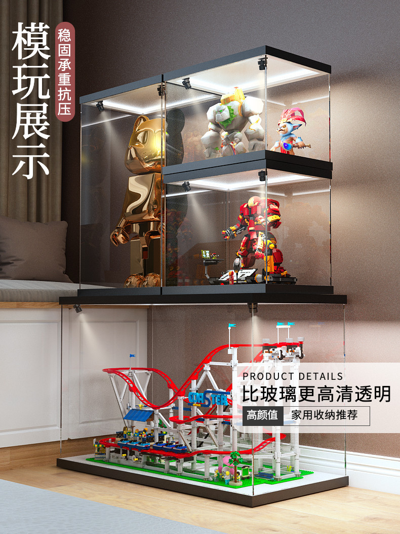 적용 가능한 레고 장난감 모델 건담 수제 라이트 스토리지 먼지 커버 멀티 사이즈 아크릴 상승 디스플레이 박스