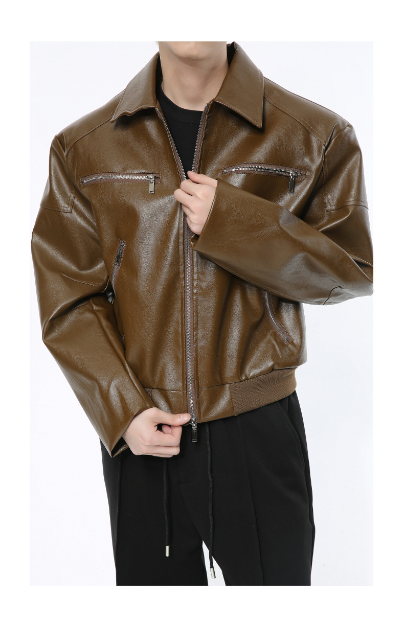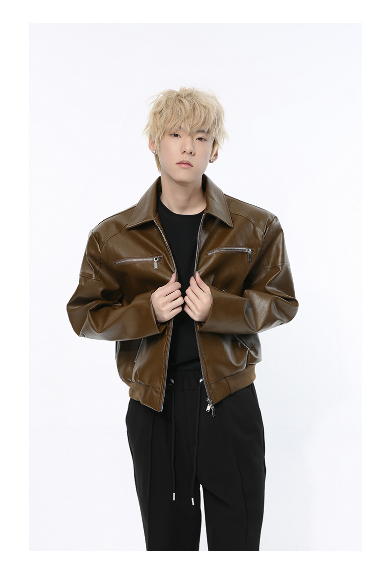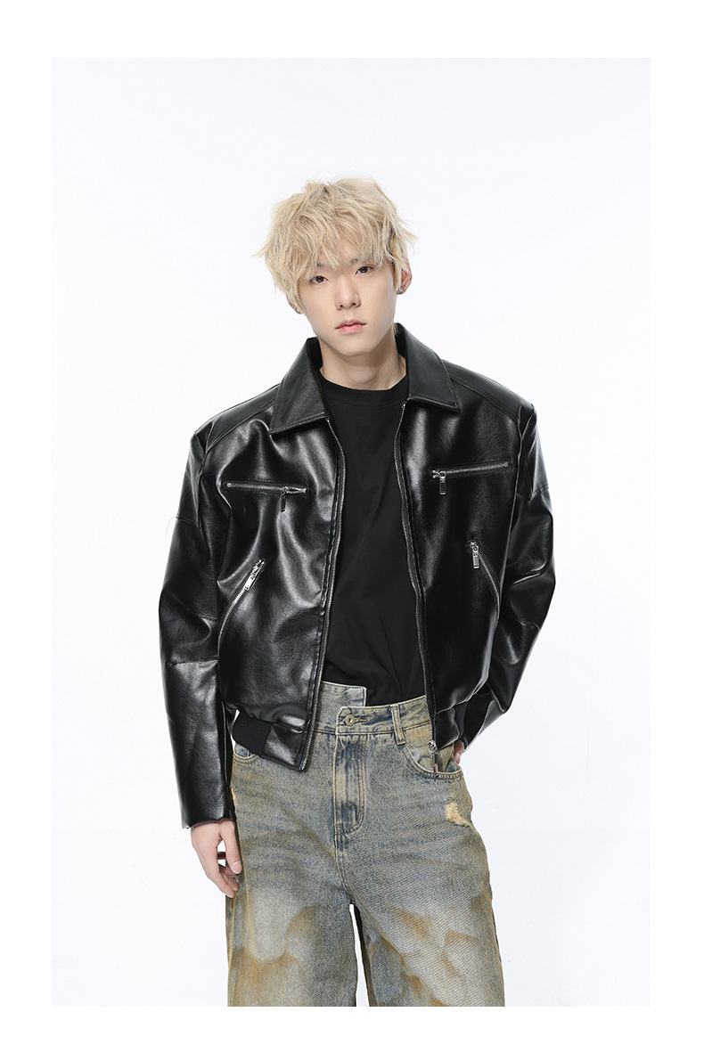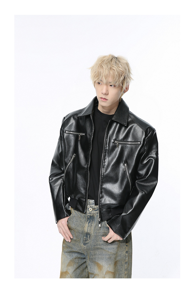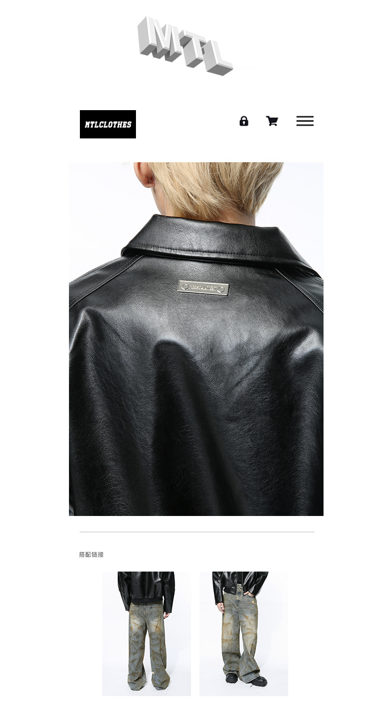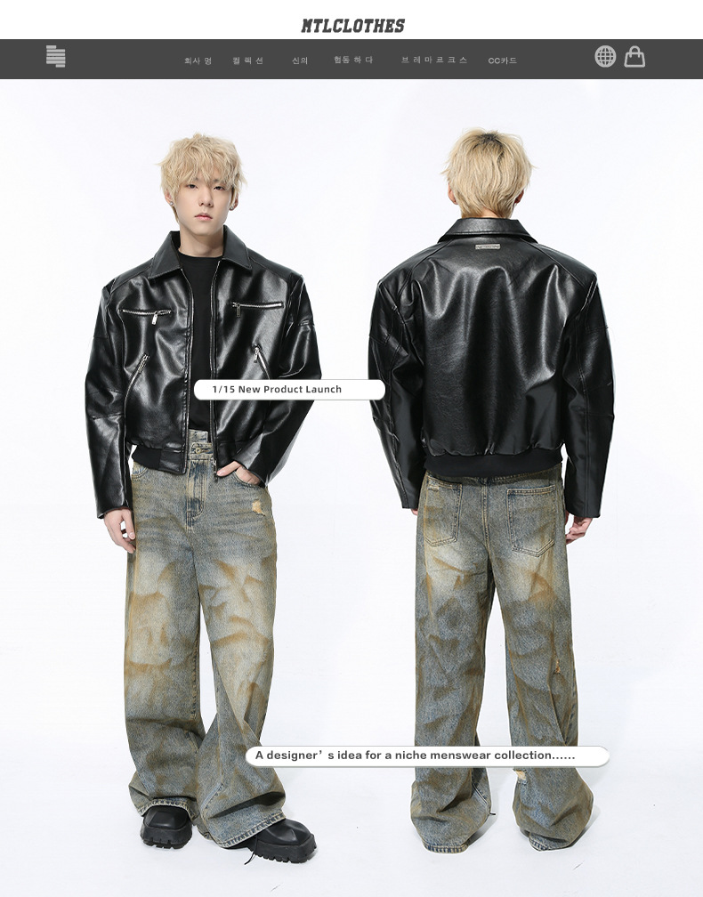MTLCLOTHES 남성복 | 멋스러운 고급스러운 메탈 지퍼 디자인의 짧은 가죽 재킷, 트렌디하고 캐주얼한 스타일스토어 가기